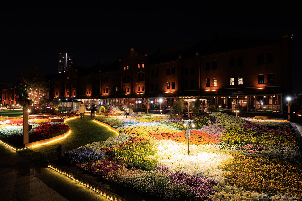 横浜赤レンガ倉庫は2002年4月にオープンした観光スポットで、オレンジ色に輝くライトアップの美しさが多くの訪問者を魅了します。
