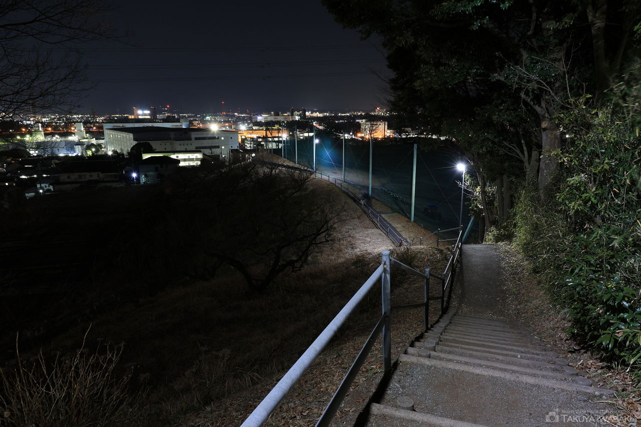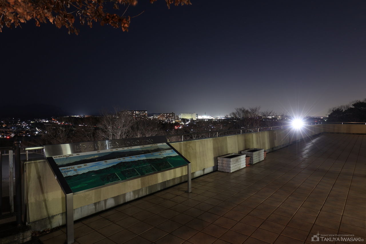 中型前方後円墳となっている地頭山古墳は柵で囲まれていますが、棚の付近からは厚木市内を中心とした夜景が観賞できます。