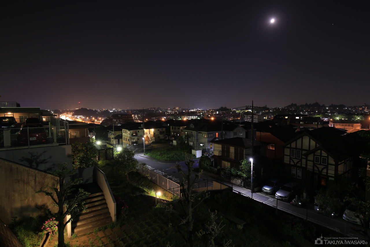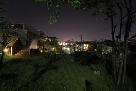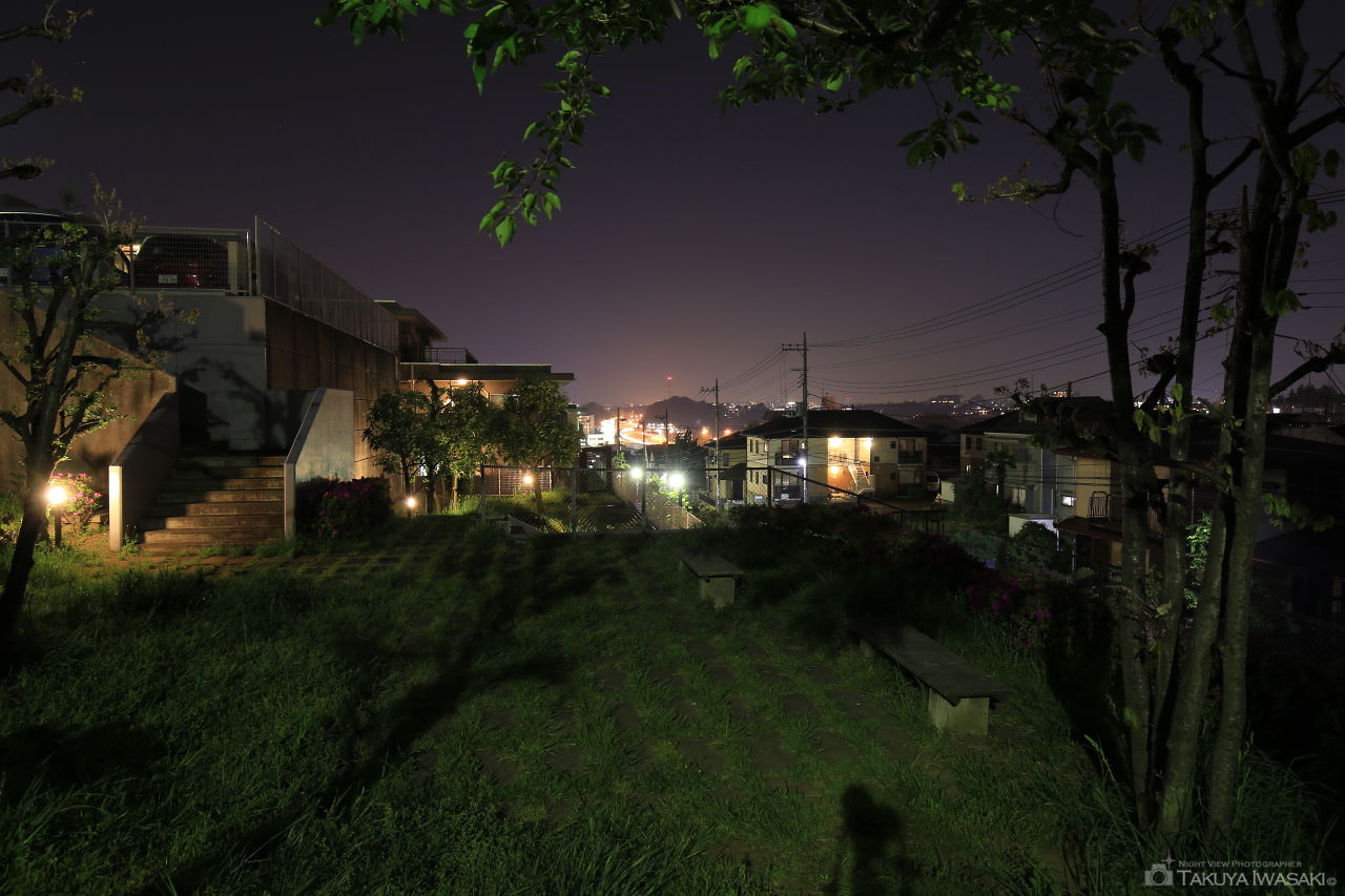 住宅地の斜面に形成された小さな公園。小規模な夜景になりますが、ベンチに座ってゆったりとあざみ野駅方面の夜景が観賞できます。
