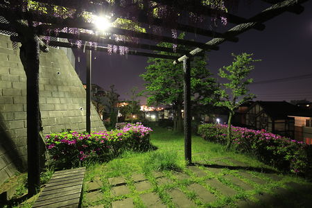 小高い丘の上にある公園からは港北ニュータウン一帯の夜景を眺められ、春は桜の名所としても知られています。
