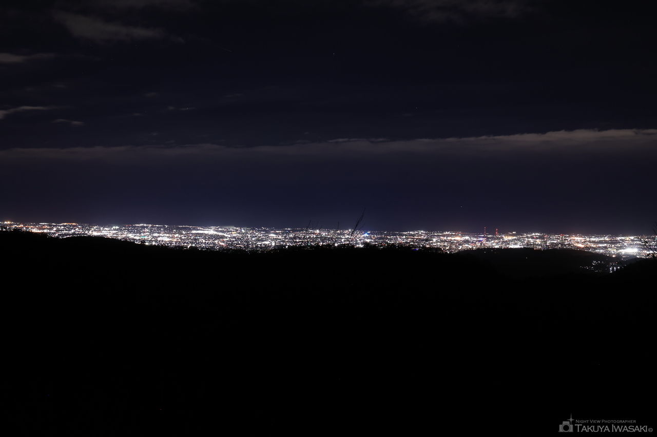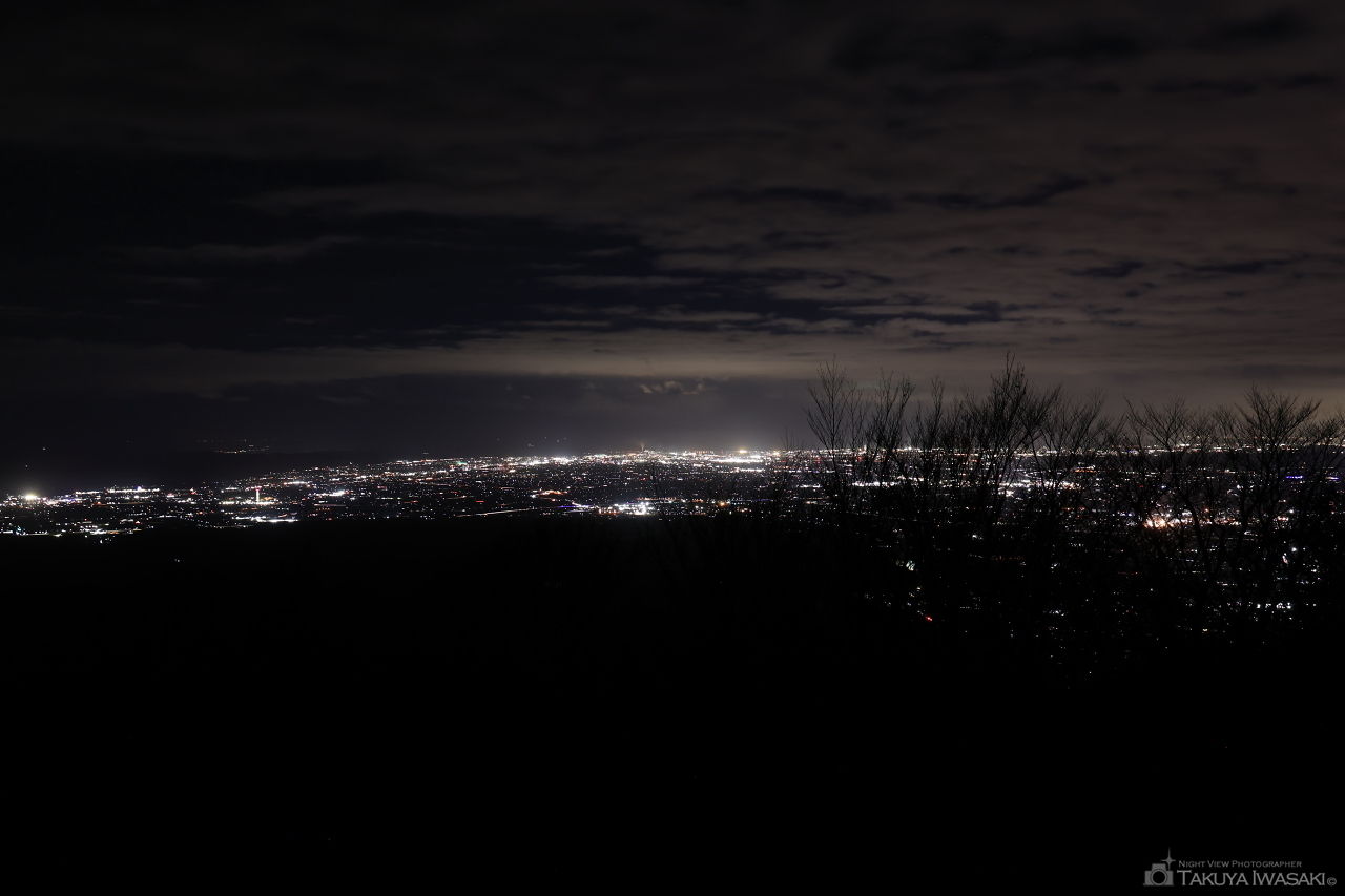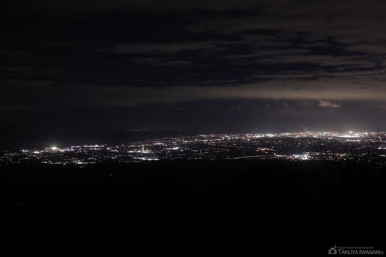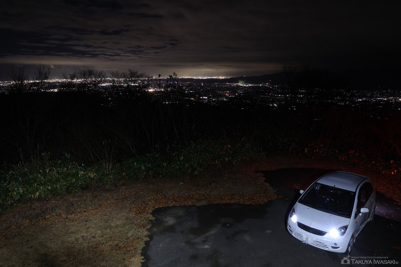 標高789.5mの展望台からは砺波平野と金沢方面の両側の夜景が見渡せます。真っ暗な山道の先にあり、マニア向けの夜景スポットと言えます。