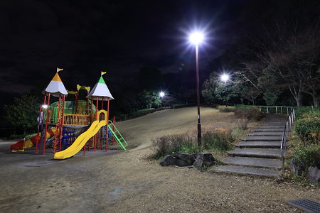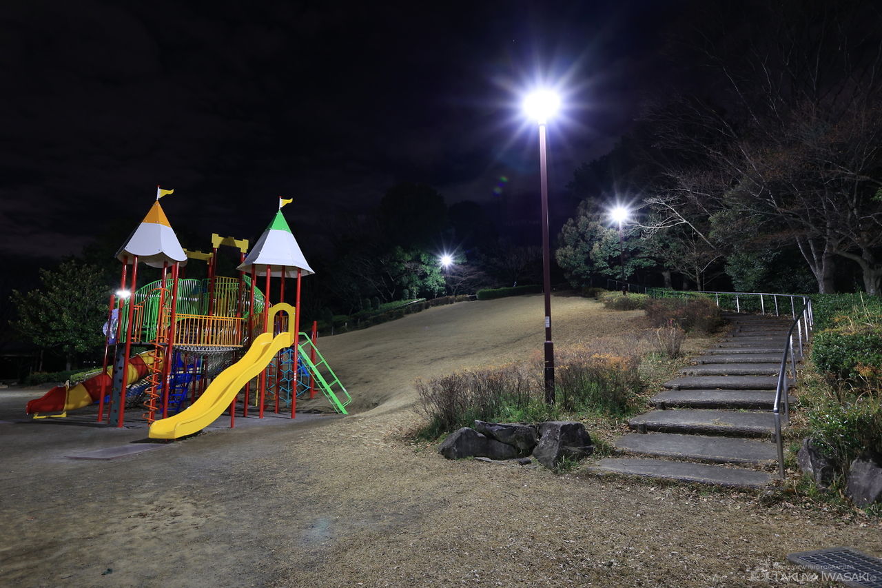 野津田町の住宅街の中にある小さな公園からは野津田町を中心とした夜景をゆったりと眺められます。