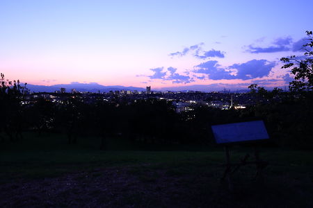 青葉区のあかね台の西側に隣接する「成瀬尾根緑地」は町田市成瀬との県境になっており、周囲は芝生が広がります。芝生の案内版付近からは町田方面の住宅街夜景を見渡せ、特にトワイライトタイムは天気が良ければ富士山も見渡せます。ベンチなどの設備はありませんが、芝生が緩やかな斜面となっているため、芝生に座ってのんびりと夜景を楽しめます。なお、町田方面からのアクセスは道が狭くダート状になっているため、あかね台側からの訪問をおすすめします。