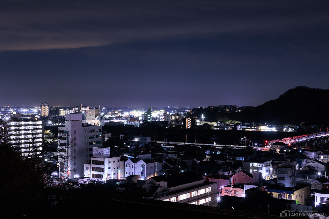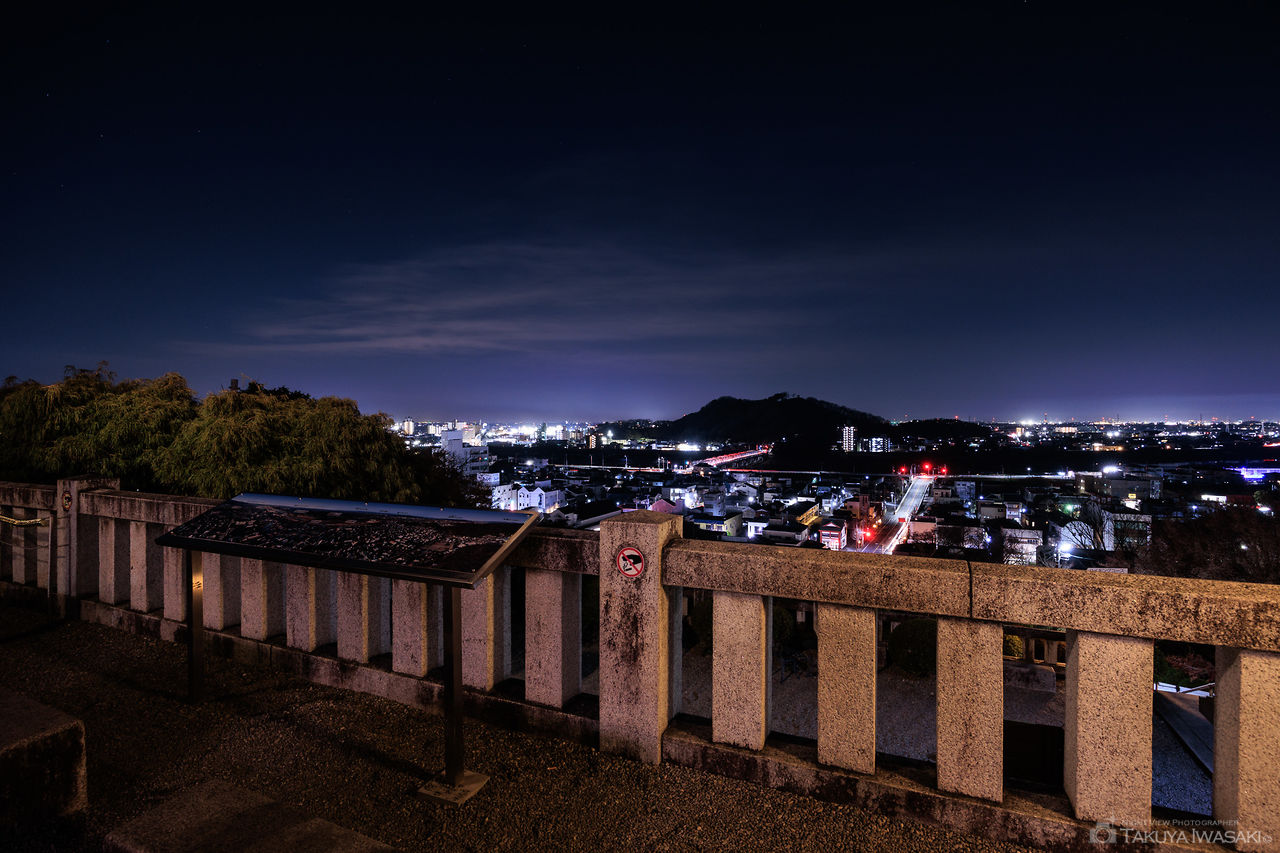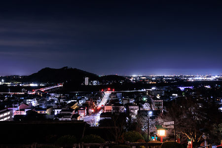 特筆すべきは境内からの眺望で、足利市街の灯りとともに、名曲でも知られる渡良瀬橋を眼下に見渡せるのが大きな魅力。近隣の織姫公園と比較すると、高度こそ低いものの、視界の広さと雰囲気の良さは随一です。