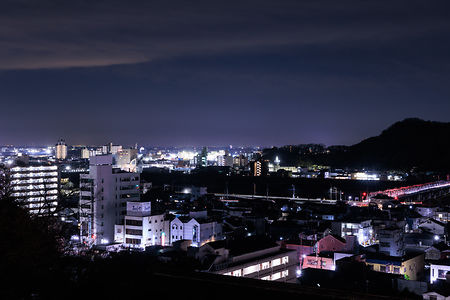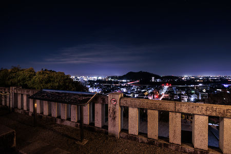 足利市の中心地から西寄りの丘陵地にある公園。10基の古墳がある公園で、駐車場または森の遊び場から夜景を観賞できます。車内からも夜景が楽しめるのも魅力。