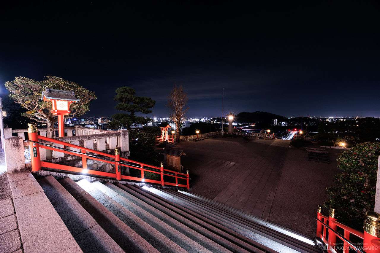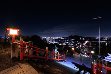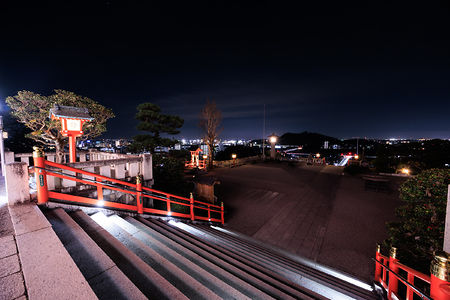 栃木県足利市の織姫神社は、24時まで社殿が美しく輝くライトアップスポット。境内からは市街地や渡良瀬橋のパノラマ夜景が広がり、「恋人の聖地」としても人気です。ドライブの目的地としても最適な環境が整っています。