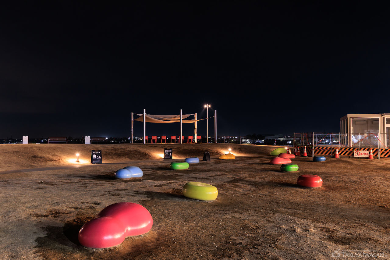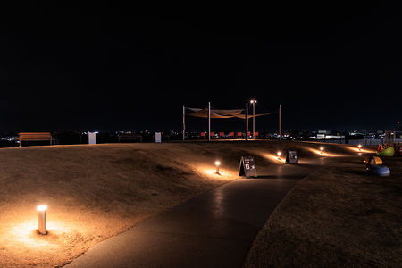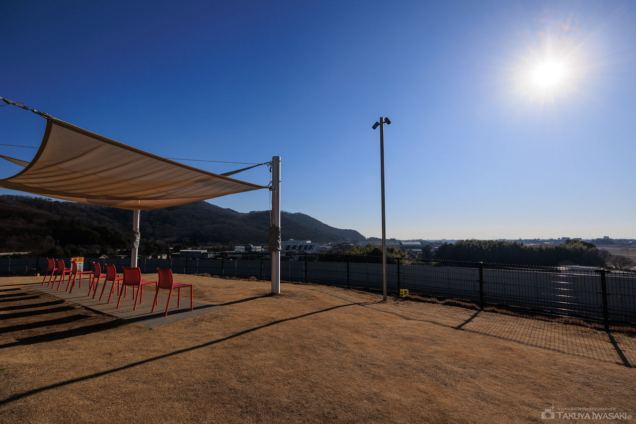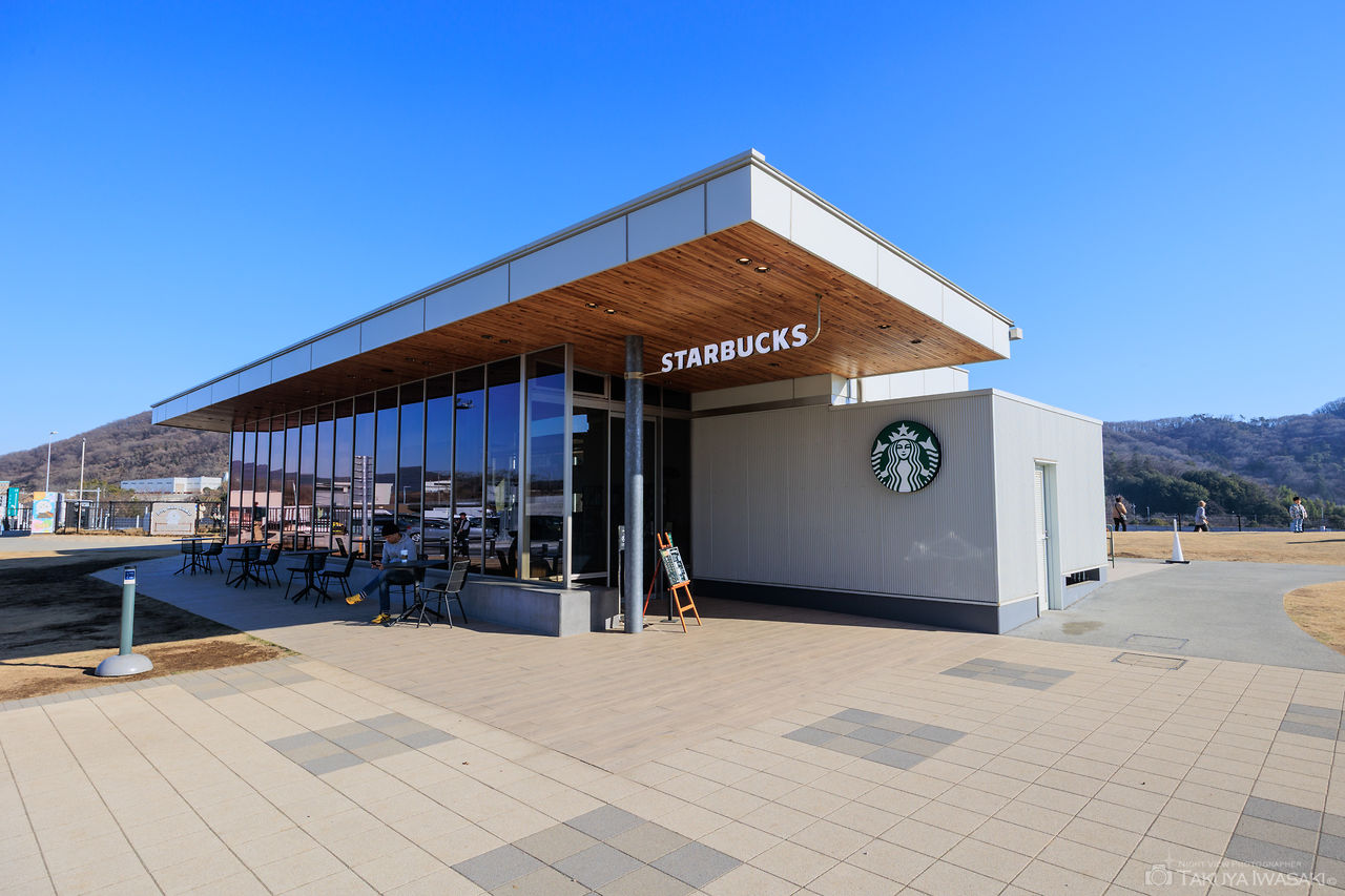 東北道屈指の規模を誇る佐野サービスエリア。2022年にリニューアルオープンした下り線「ドラマチックエリア佐野」は、洗練されたモダンな意匠と開放的な空間が特徴です。特にスターバックスに隣接する芝生広場は、スタイリッシュな外観と遠くに輝く街明かりが調和し、ハイウェイオアシスのような上質な雰囲気を醸し出しています。