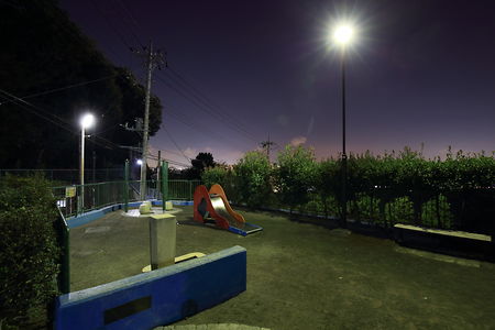 新吉田東の住宅街の斜面にある小さな公園。天候の良い日であれば横浜ランドマークタワー・新横浜プリンスホテル方面の夜景を観賞できます。