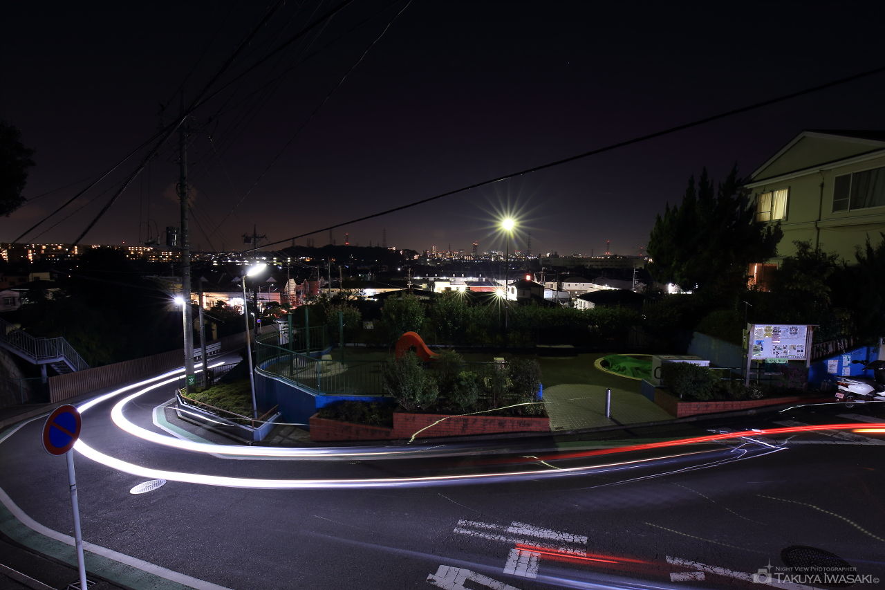 新吉田第三公園は住宅街の坂の途中にある小さな児童公園で、滑り台と砂場などの設備だけがあります。公園奥には一部視界が開けた場所があり、横浜ランドマークタワー・新横浜プリンスホテル方面の夜景が見渡せます。公園の北側にある坂道からも夜景が見渡せますが、時間帯を問わず車の往来があるため、夜景観賞時は安全面に注意したいところです。