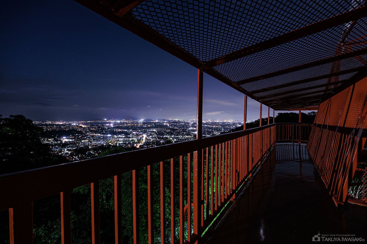 湘南平からほど近い場所にあるビューポイント。フェンス越しに平塚市内の夜景と東海道新幹線の光跡を観賞できます。