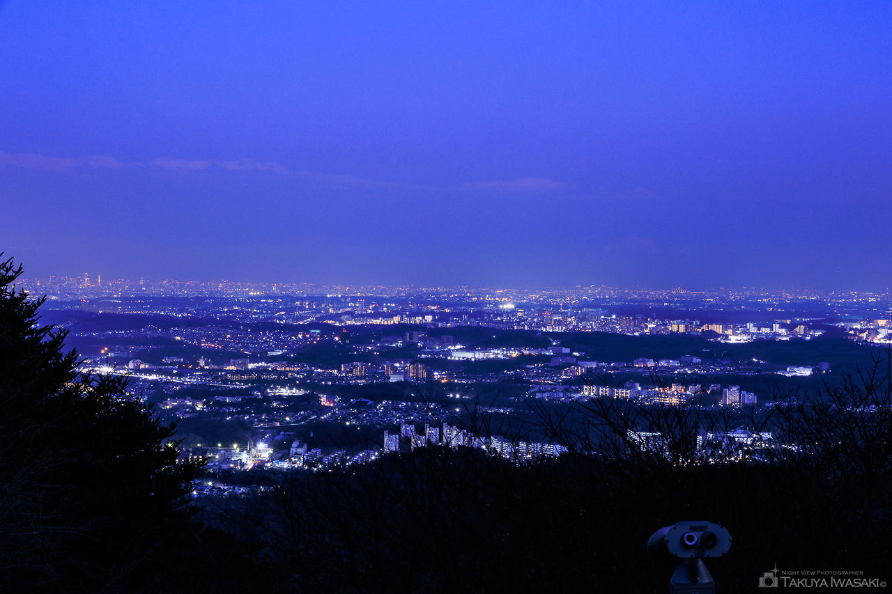 住宅地の高台にある公園で、八王子市内の夜景を見渡せ、天候の良い日であれば、東京スカイツリーや東京タワーも確認できます。