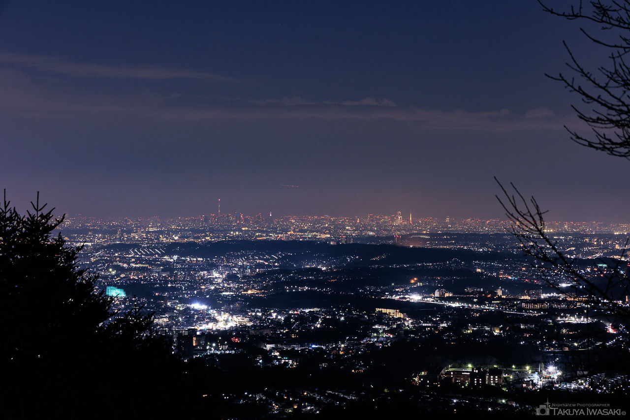 高尾山では知る人ぞ知る、東京スカイツリー・東京タワーも見渡せる展望台。八王子市内を中心に街明かりが広がります。