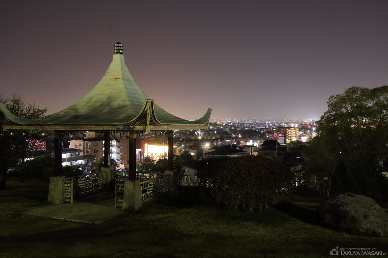 360度の眺望が開け、地元では夜景スポットとして知られている有名な公園。週末にもなると駐車場が混雑するほど、多くのカップルや若者が夜景を目当てに訪れます。