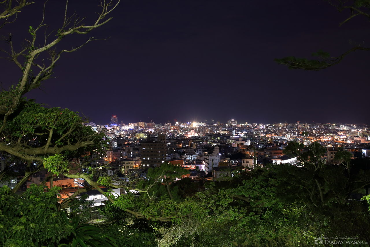 首里城から見て頂上の岩石が虎の頭に見えたことから、虎頭山とも呼ばれている公園。公園には実際には岩石は見当たりませんが、公園のいたる場所から那覇市内の夜景が見渡せます。周囲に駐車場が無いため、車でのアクセスは不向きですが、夜間も街灯で照らされているため、それほど怖さは感じません。