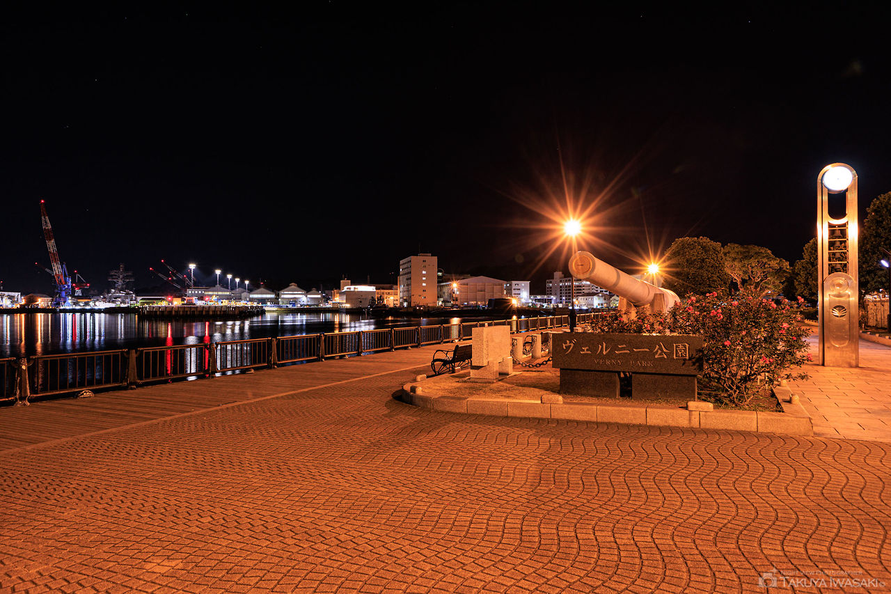 横須賀製鉄所の建設に貢献したフランス人技師ヴェルニーが由来の公園。海岸沿いのデッキから横須賀の軍港夜景を観賞できます。オレンジ色の暖かみある街灯に包まれ、デートにもおすすめ。