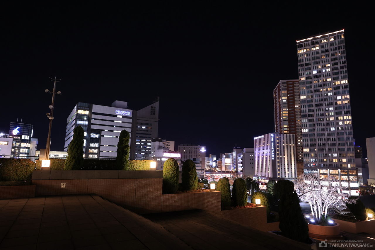 アクトの森の中で、浜松駅に最も近い場所にあるショパンの丘からは、浜松駅周辺の夜景を見渡せ、開放感も雰囲気も抜群です。