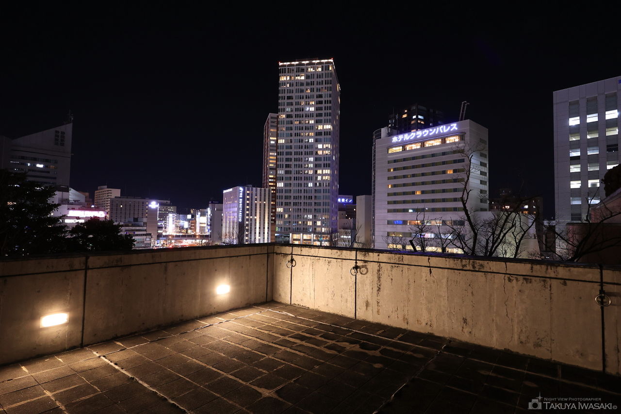 屋外ステージとなっている広場からは、板屋町方面と砂山町方面の夜景が見渡せます。