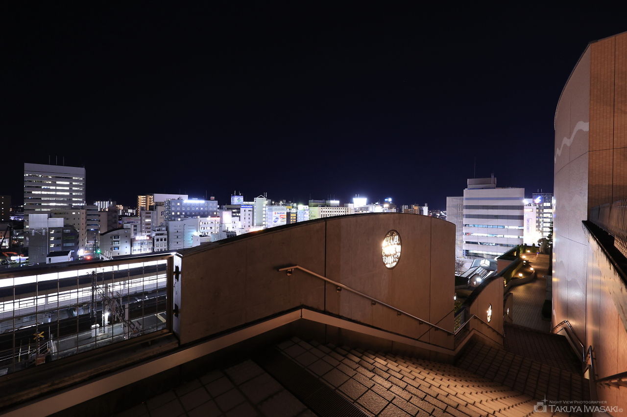 屋外ステージとなっている広場からは、板屋町方面と砂山町方面の夜景が見渡せます。