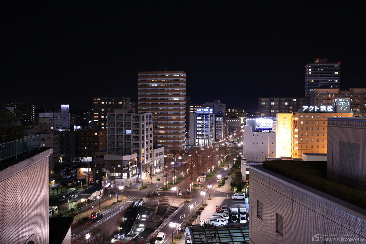 富士見櫓跡からは、遠州病院駅方面を中心にホテルコンコルド浜松も見渡せます。夜景が見える範囲が限られるので、天守閣前の広場も合わせての訪問がおすすめです。