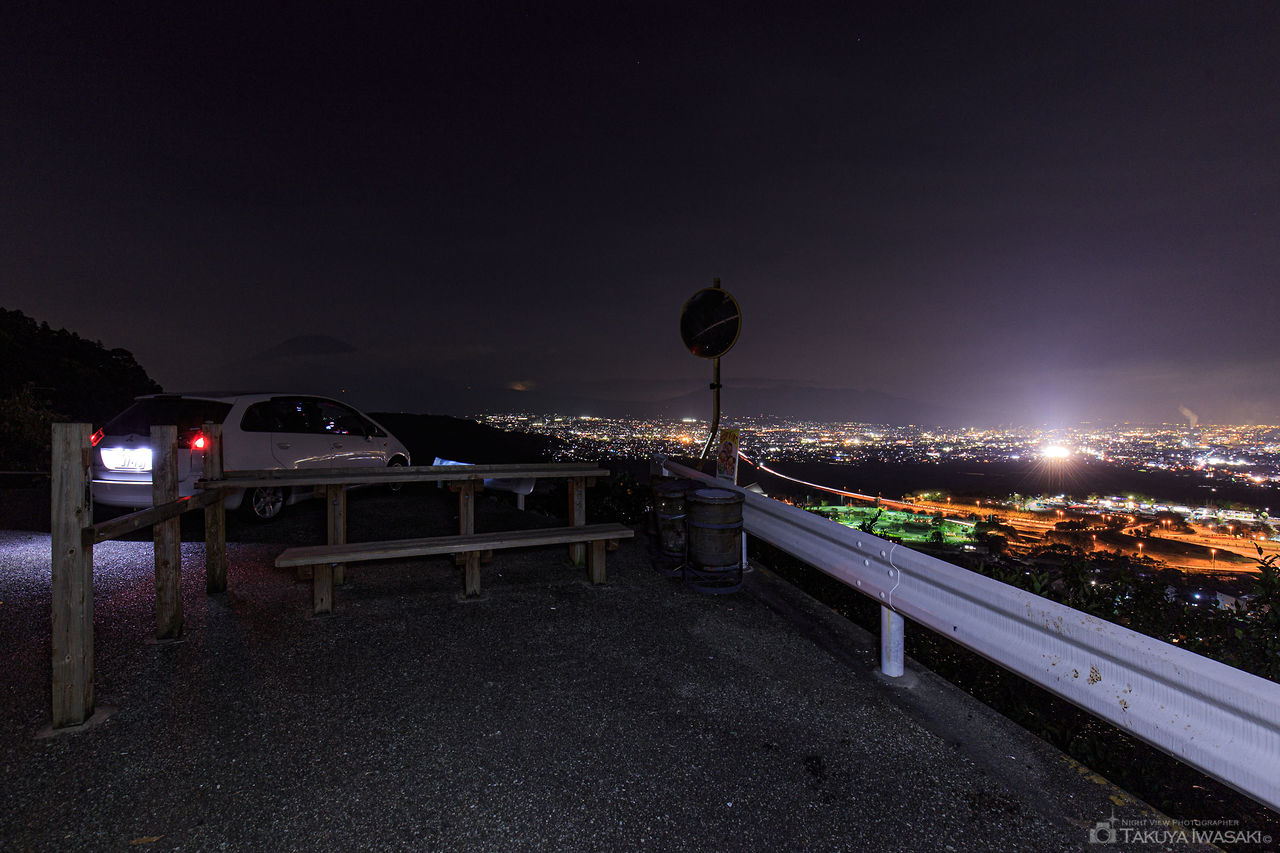 標高377mの雨乞山からは富士川サービスエリア・東名高速道路を中心に富士市内の夜景を一望でき、視界一面に大パノラマが広がります。