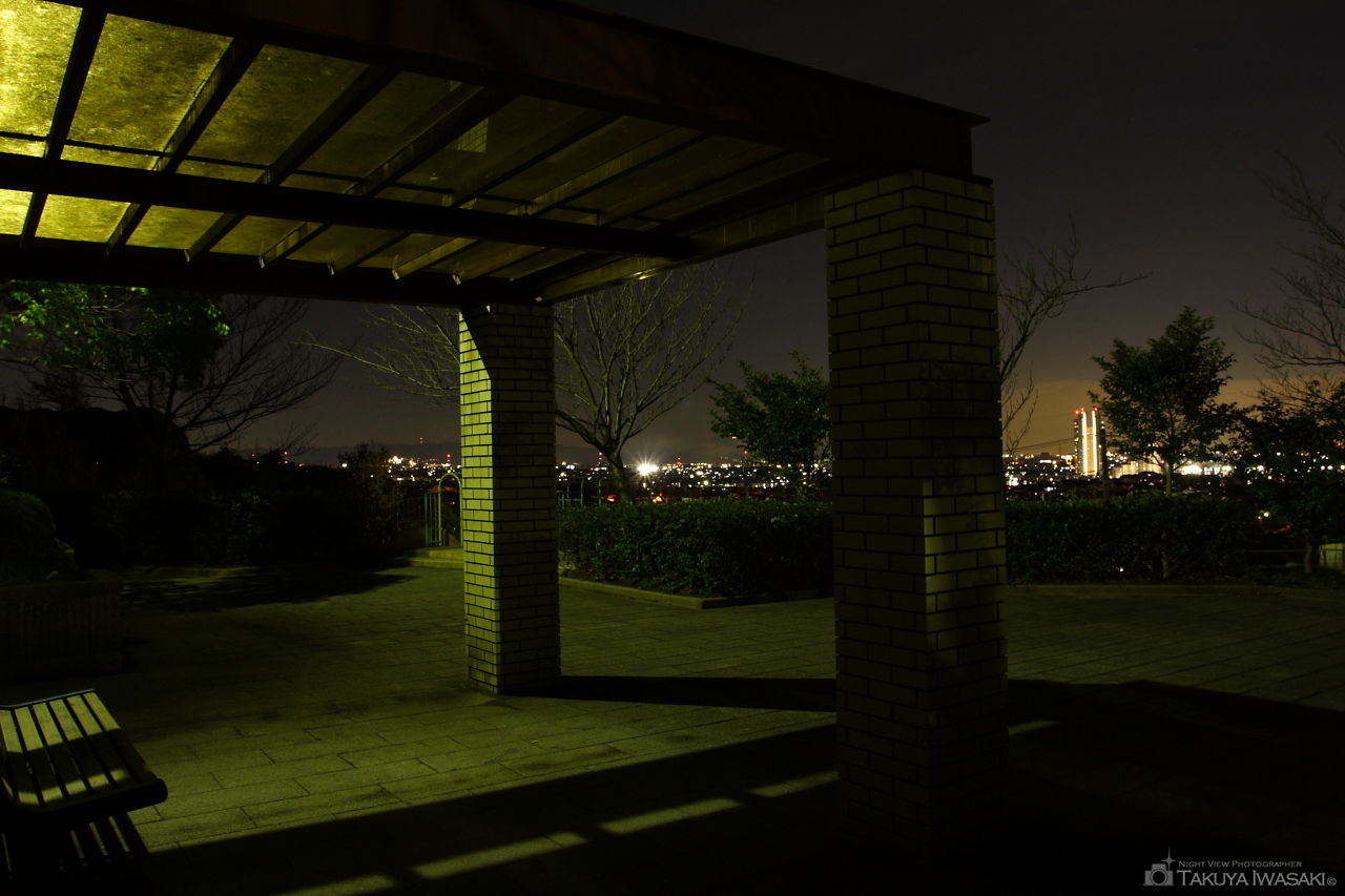 八幡市内の閑静な住宅街の中にある小さな公園で、公園の頂上まで登ると樟葉を中心とした夜景を観賞できます。スケールはそれほどではありませんが、あまり人がいない場所なので夜景を独占できる可能性大です。