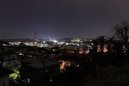 愛宕団地の手前の道路がビューポイントで、視界はそれほど広くありませんが、北西方向の夜景が見渡せます。