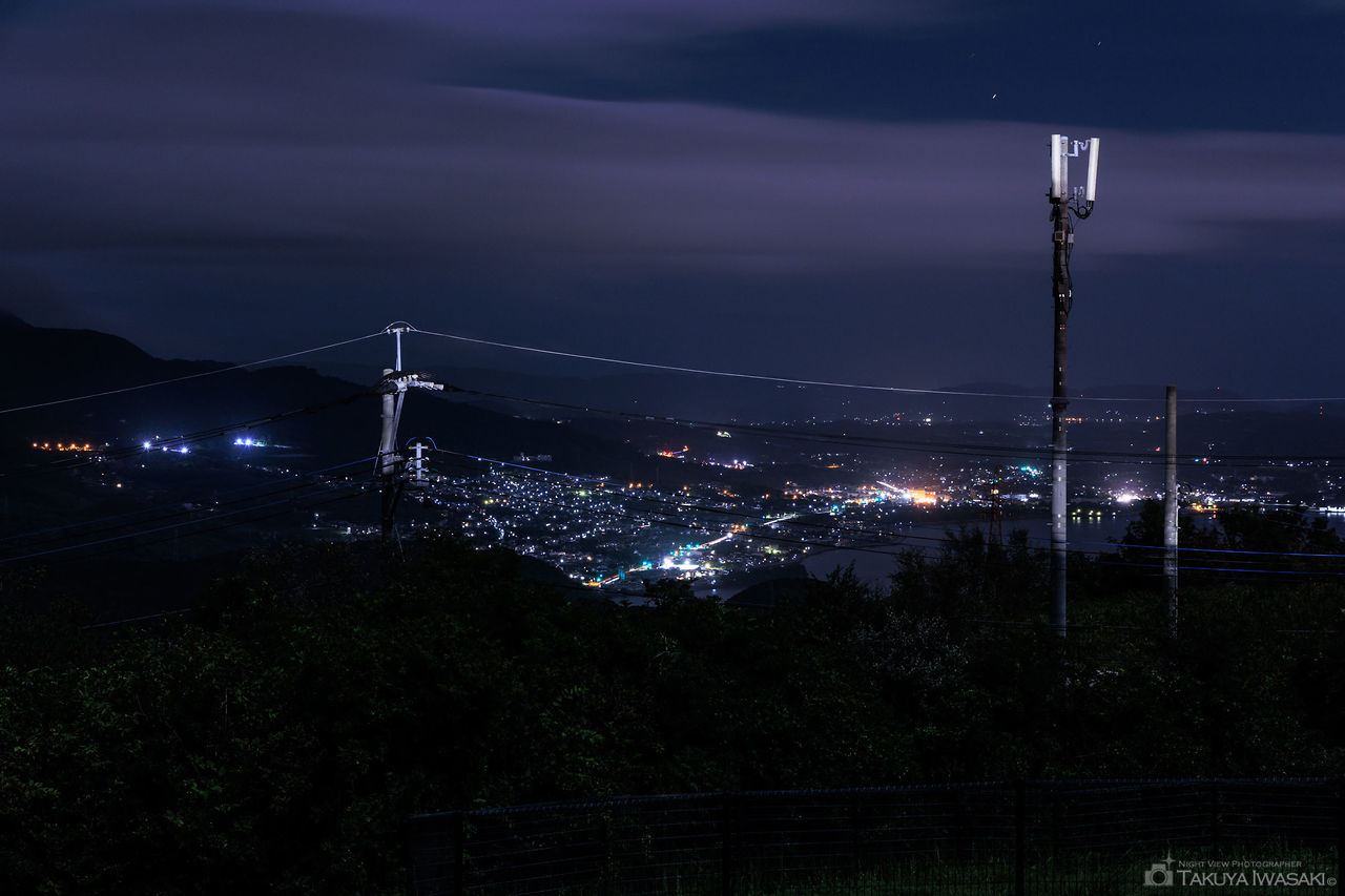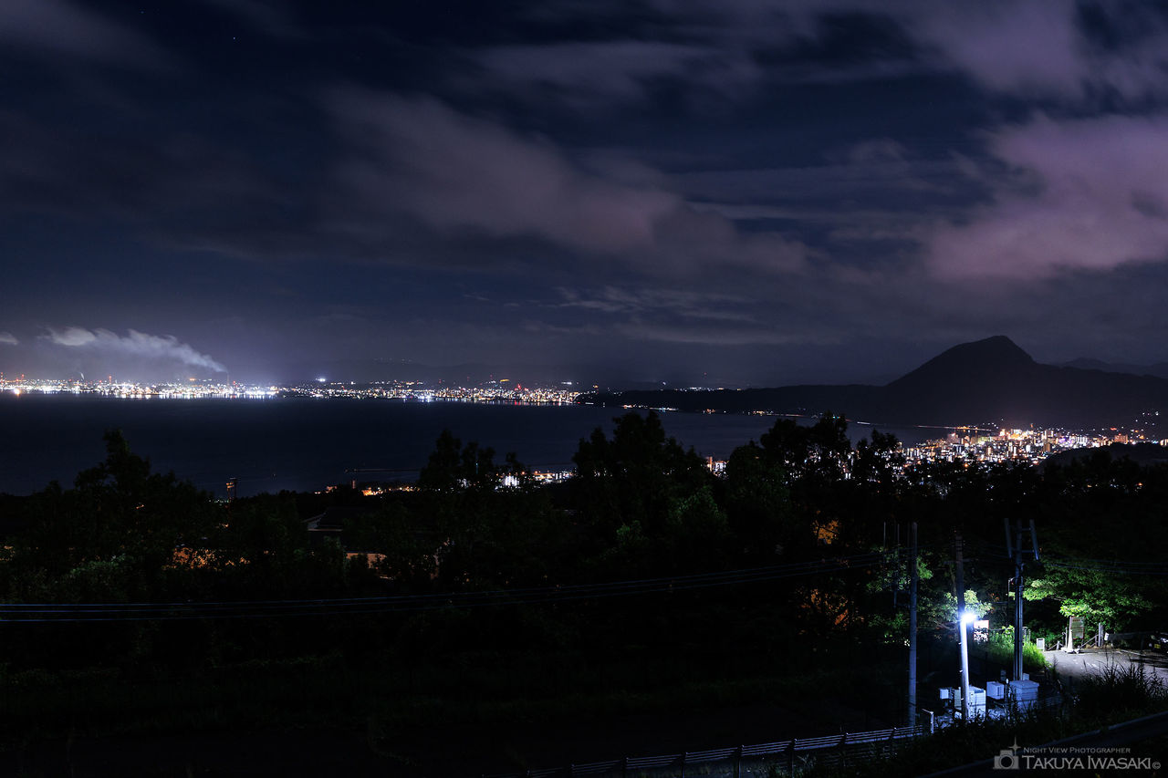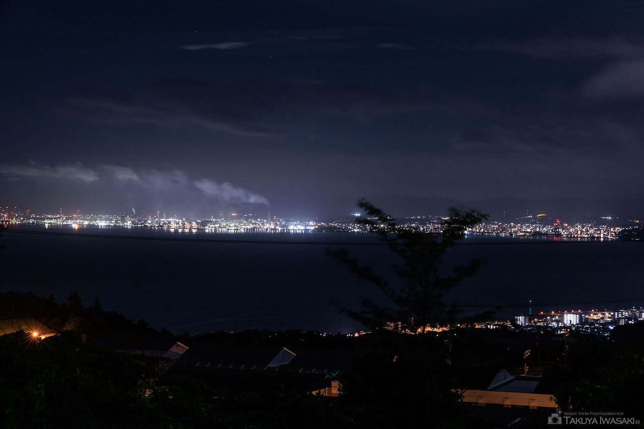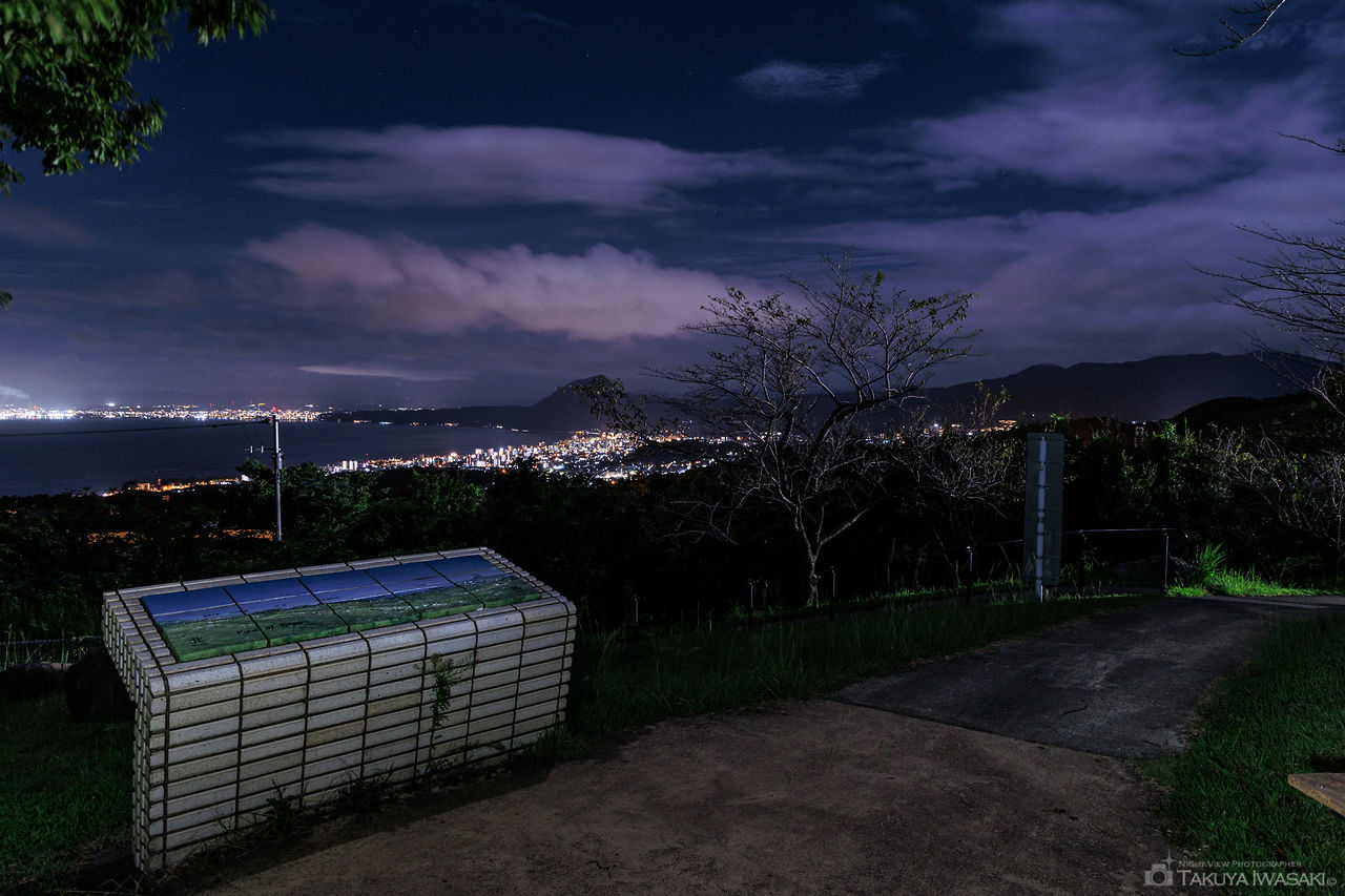 セイコーエプソン 大分ソフトセンターの手前道路がビューポイント。亀川温泉街や亀川駅方面を中心とした夜景が見渡せます。