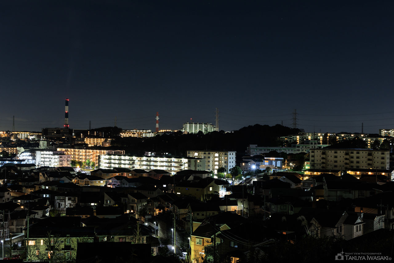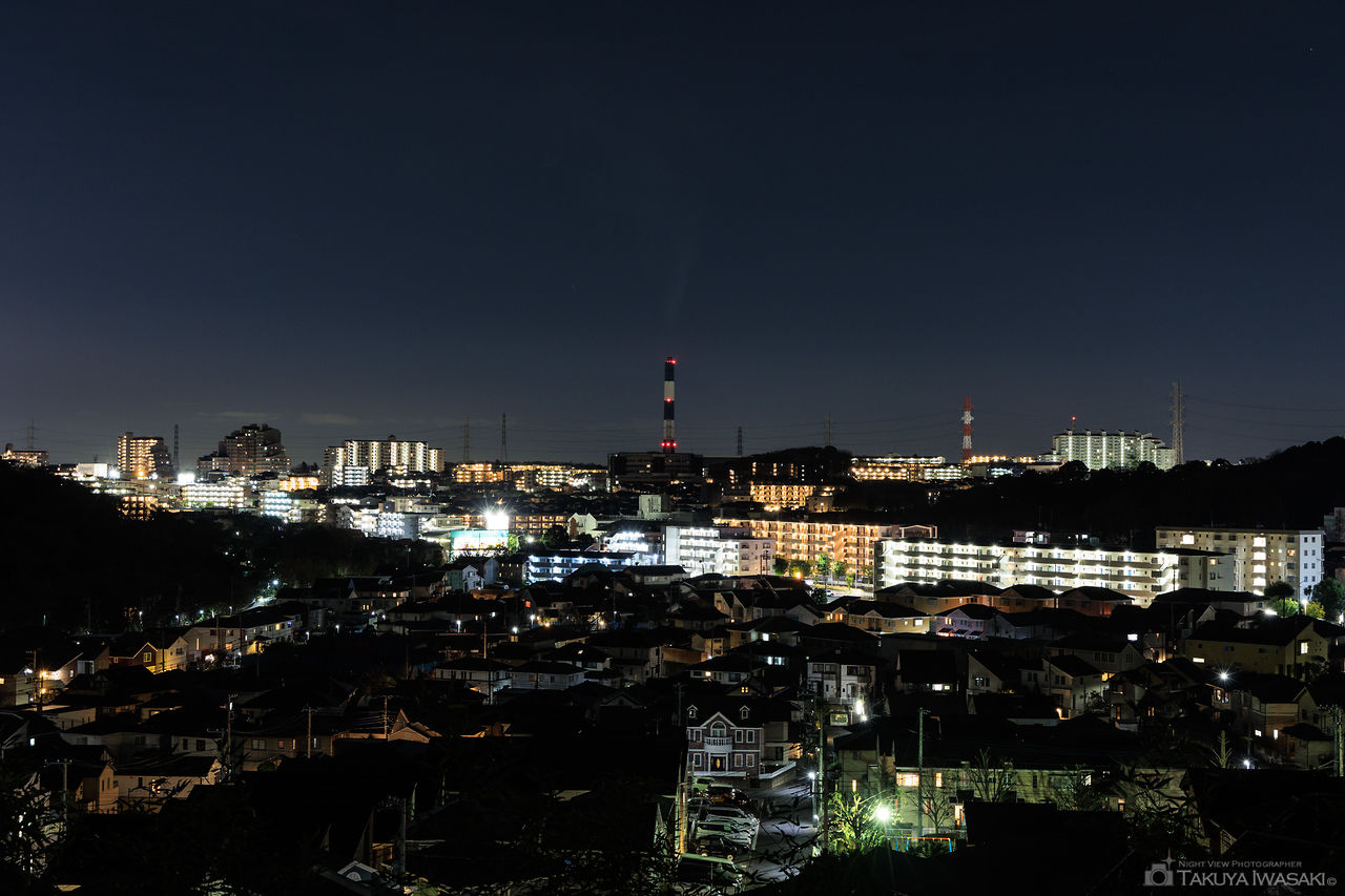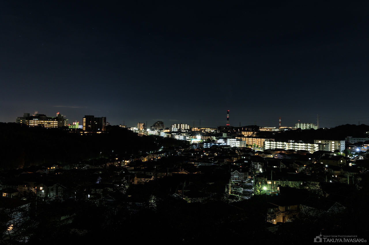 港北ニュータウンは一帯が丘陵地帯となっており、住宅街や公園から夜景が眺められる場所が点在しています。