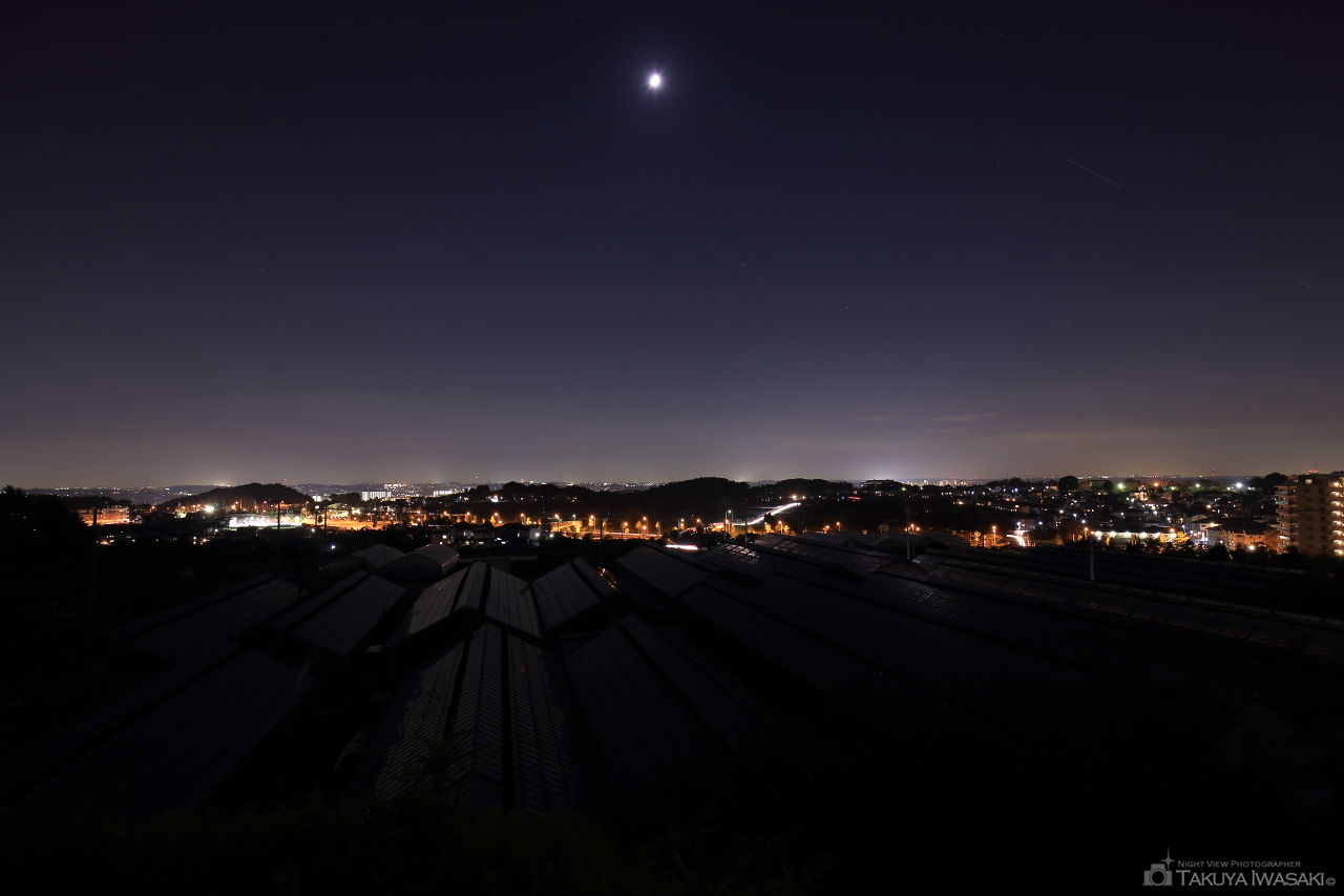 都筑区の住宅街の中にある月出松公園は縄文時代の遺跡があったことで知られています。ベンチに座って十日市場や川和台方面の夜景を観賞できます。