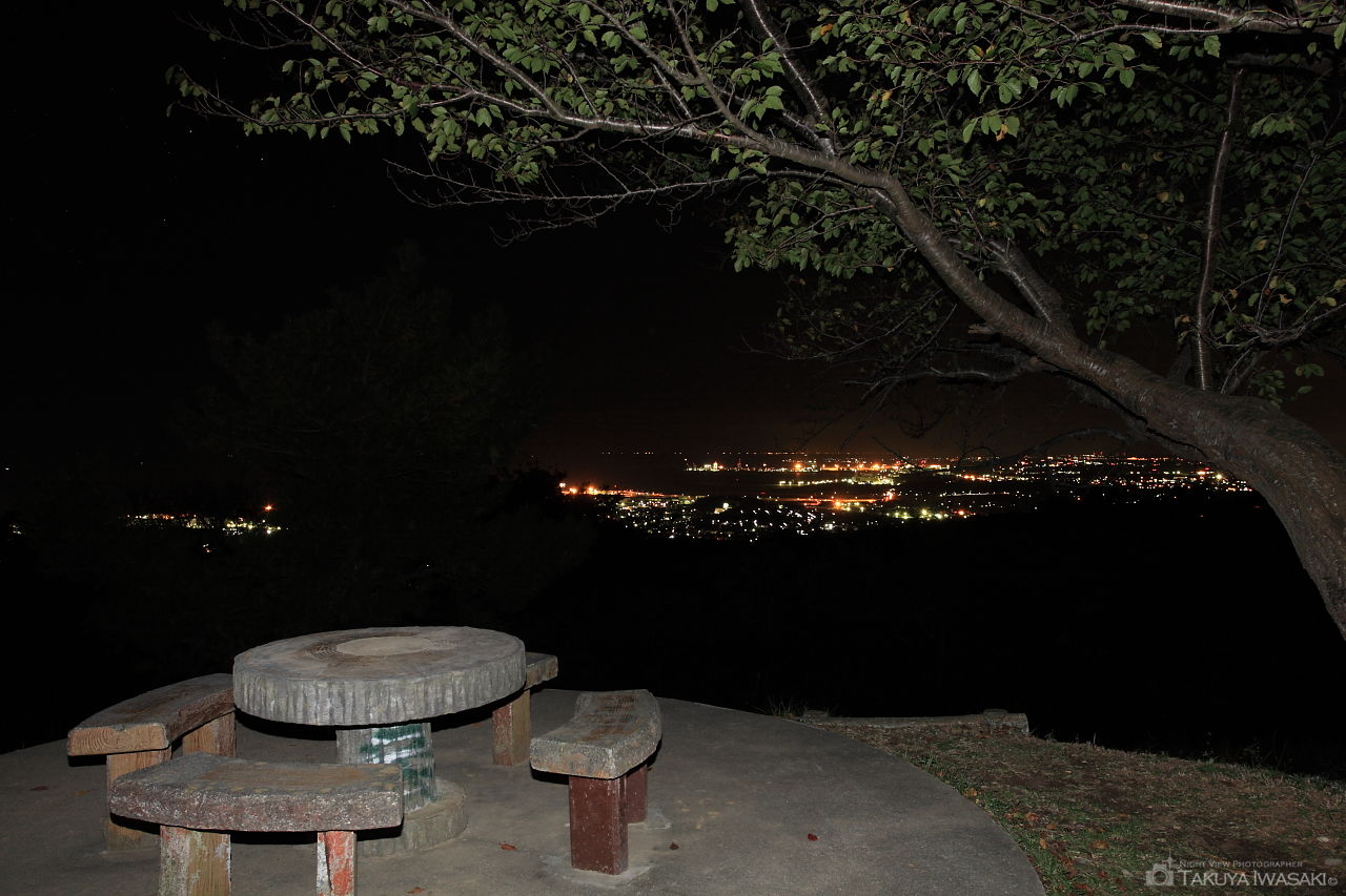 桜の名所としても知られている広大な公園。駐車場から西方向に歩くと3階建ての展望台があり、屋上から夜景が楽しめます。