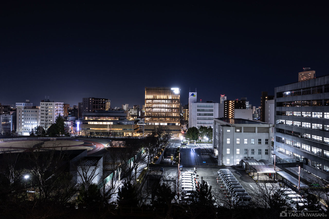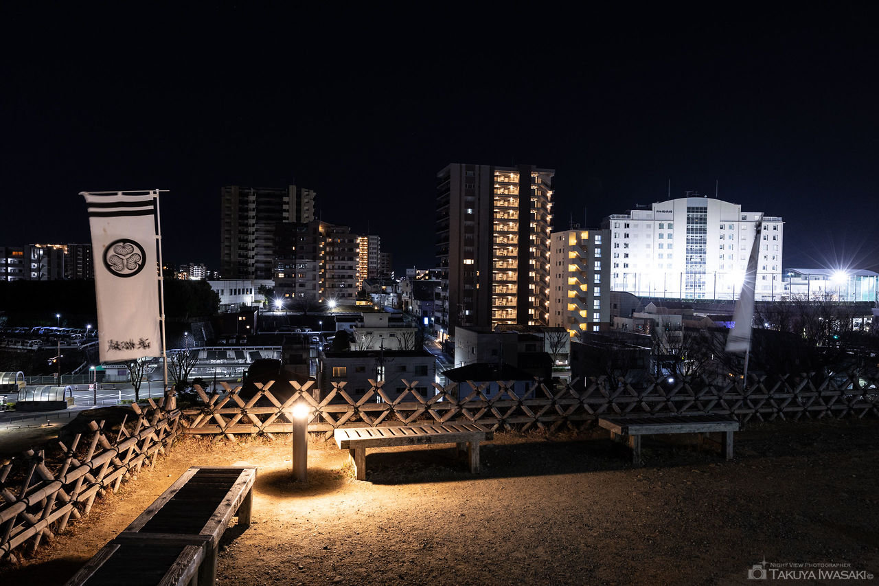 富士見櫓跡からは、遠州病院駅方面を中心にホテルコンコルド浜松も見渡せます。夜景が見える範囲が限られるので、天守閣前の広場も合わせての訪問がおすすめです。