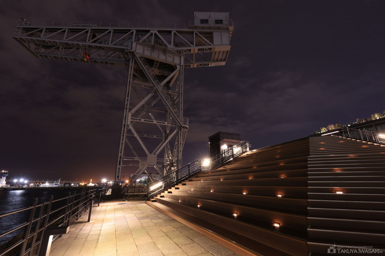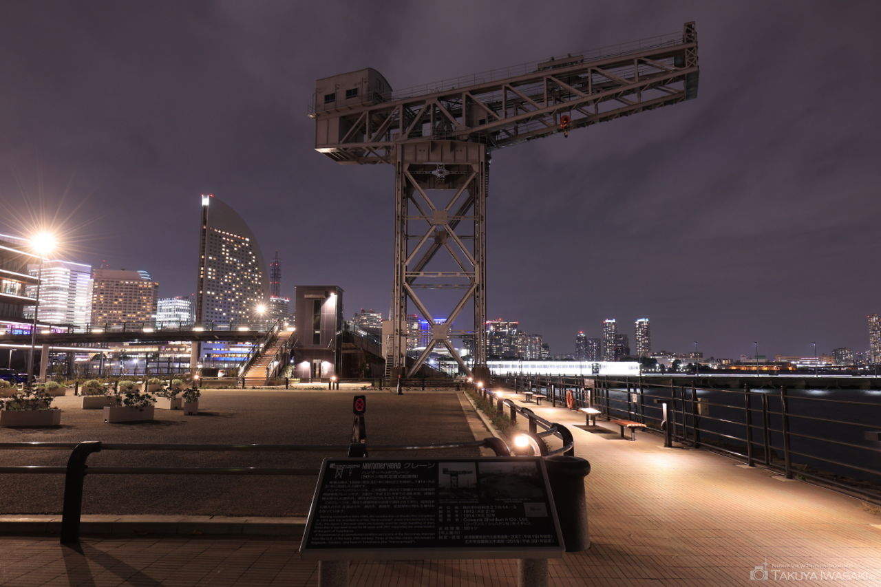 ハンマーヘッドは横浜みなとみらい21地区では特に新しい商業施設で、2019年に開業しました。ハンマーヘッドの北側には、ハンマーヘッドクレーンが設置されたハンマーヘッドパークと呼ばれる公園があり、クレーンを間近で見上げられ、遠くにはコットンハーバーや横浜ノース・ドック方面の夜景が見渡せます。公園全体がフットライトで照らされ、雰囲気も良いので、デートにもおすすめです。