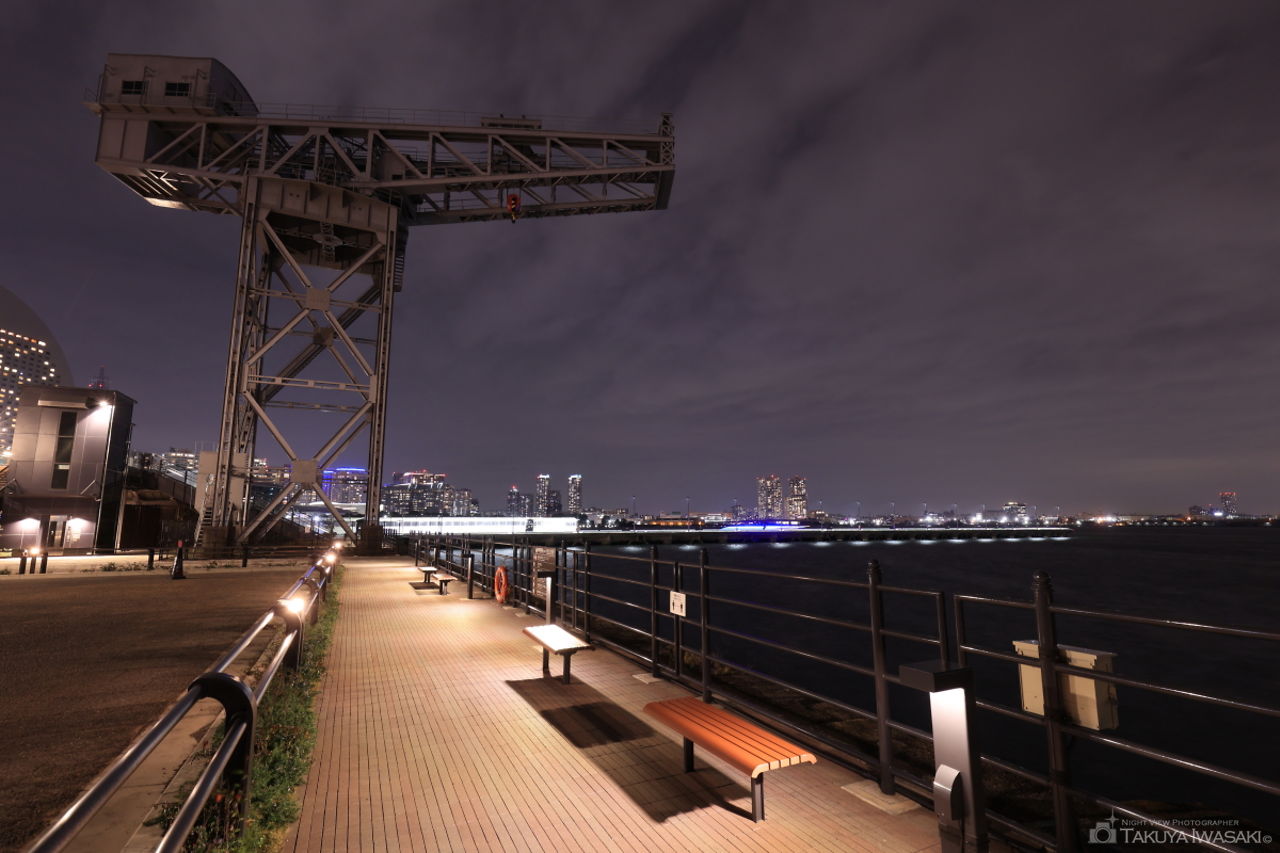横浜ハンマーヘッドの周囲は遊歩道となっており、横浜みなとみらいや横浜港の夜景が楽しめます。ベンチもあるので、ゆったりと夜景を見ながら過ごせます。