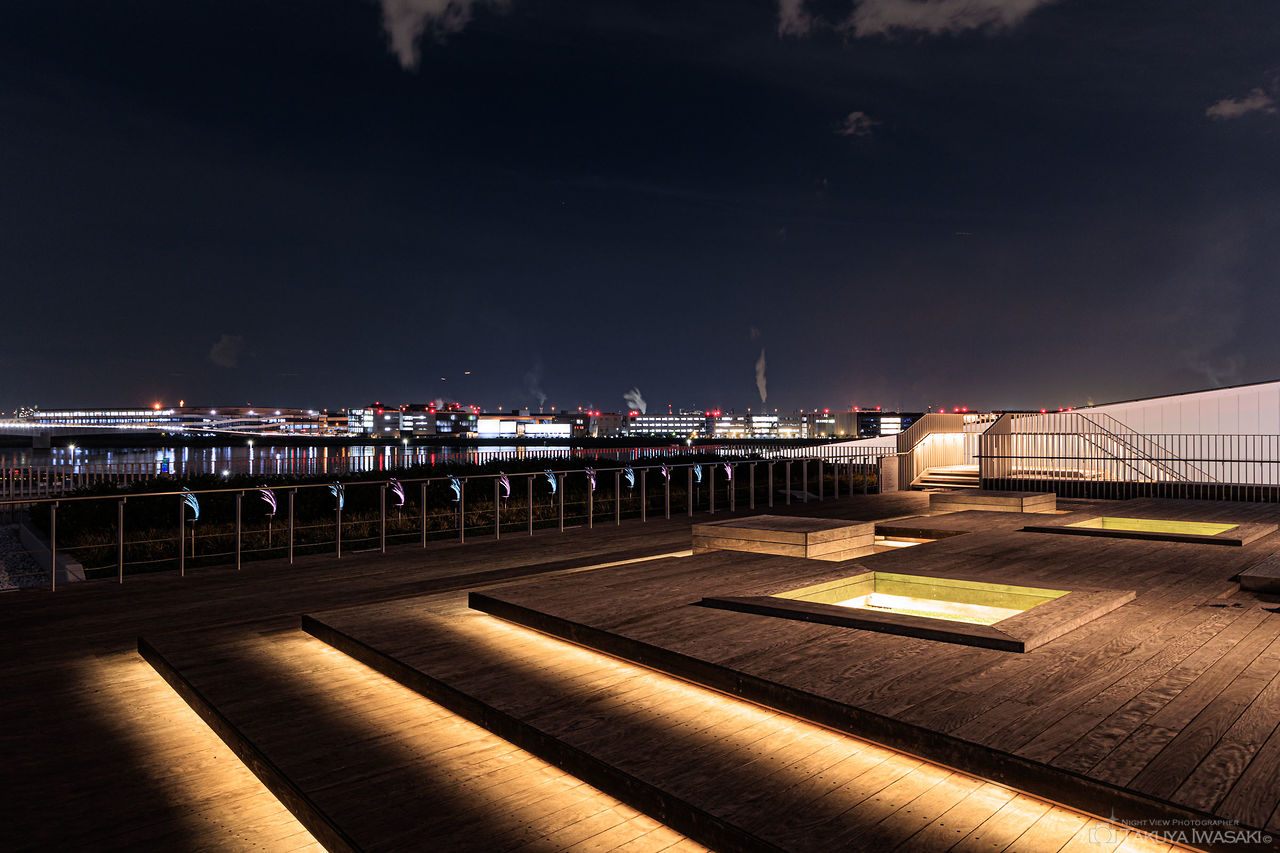 2020年4月に開園した全長1.1kmの緑地公園。多摩川スカイブリッジや対岸の殿町の夜景が見渡せます。