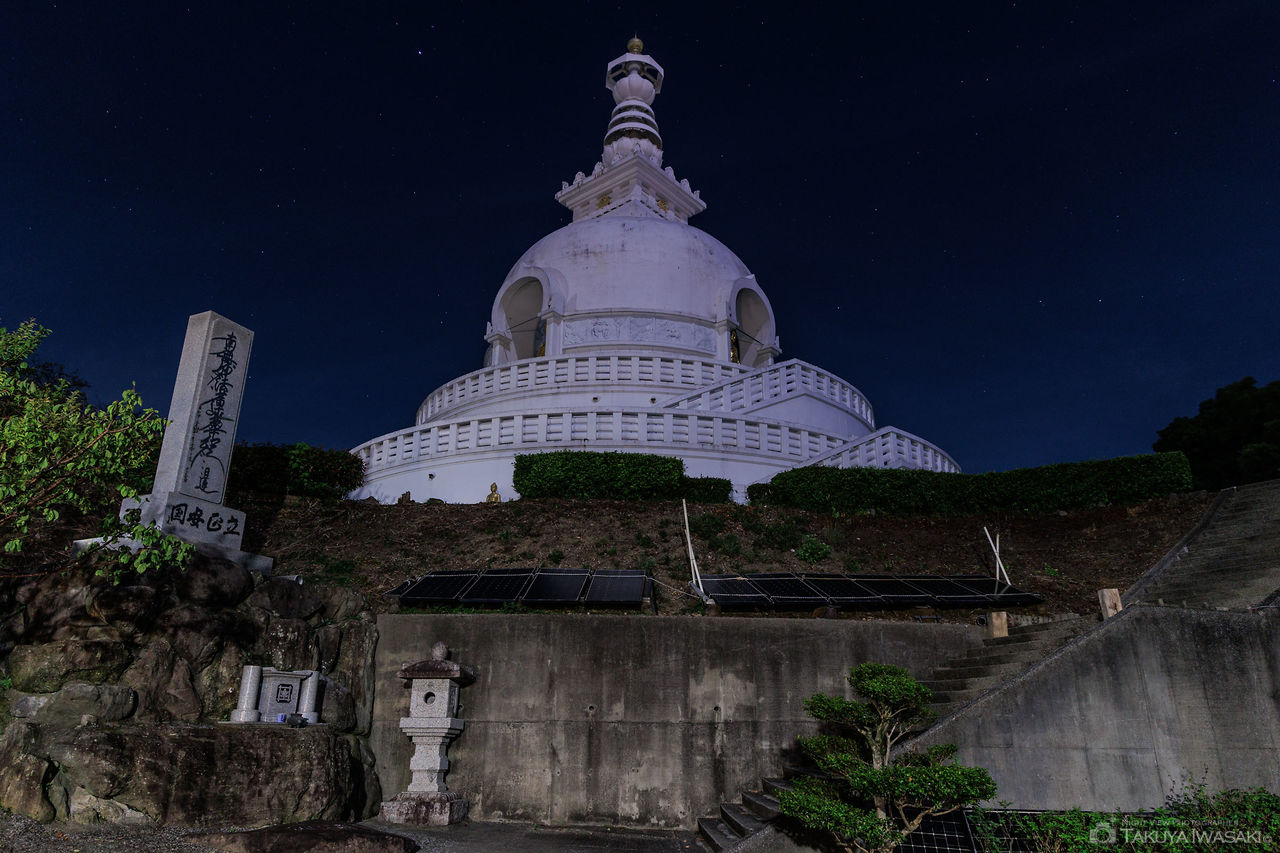 実相寺の敷地内にある平和記念塔と広場からは別府市内の夜景を一望でき、手軽に夜景を楽しめます。