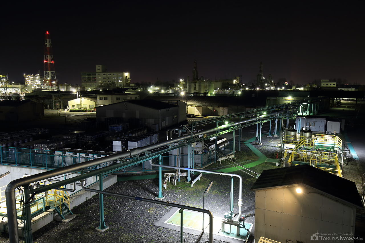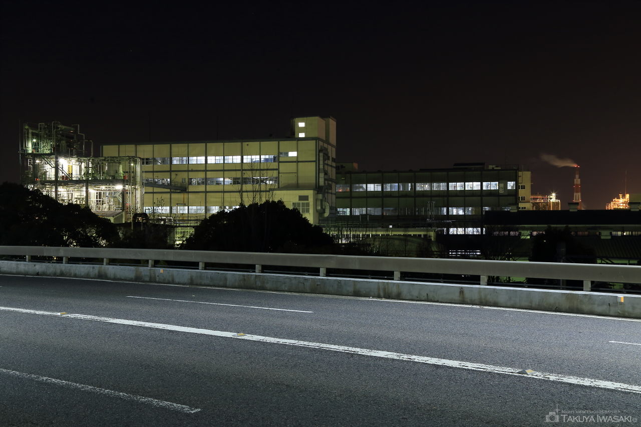 三菱ガス化学の工場夜景を間近で眺められるビューポイント。車の通行量が多いものの、訪れる人が少ない穴場スポットです。
