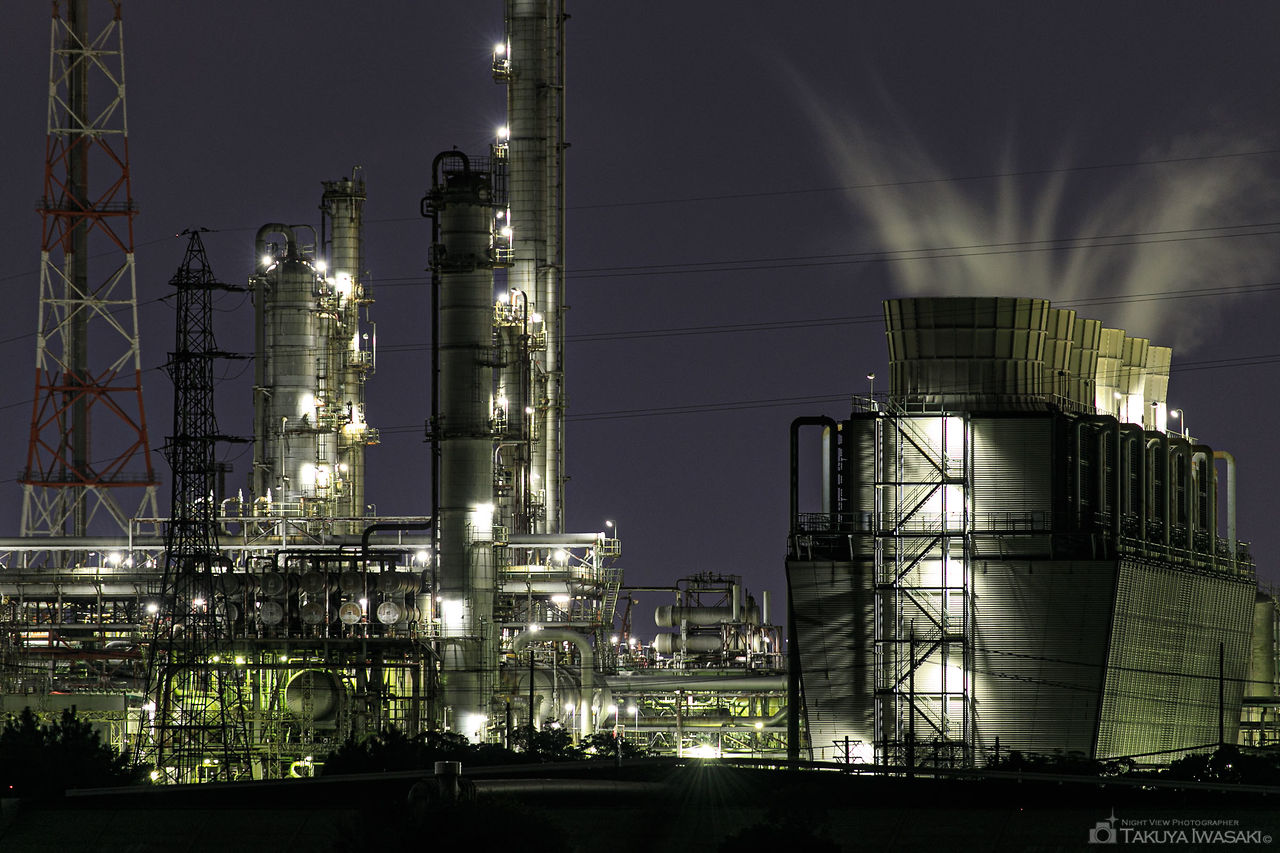 昭和四日市石油の南側にある道路から製油所や中部電力の変電所を中心とした夜景を観賞できます。車内からも工場夜景を観賞できる貴重なスポットとも言えます。