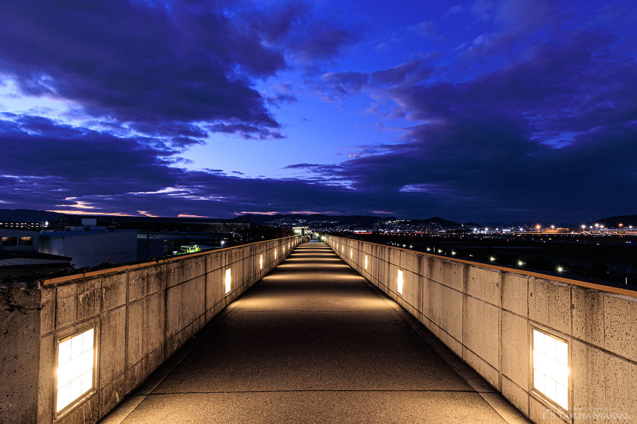 下河原緑地は伊丹空港の北側に位置し、飛行機の離着陸と滑走路のイルミネーション夜景を観賞できます。