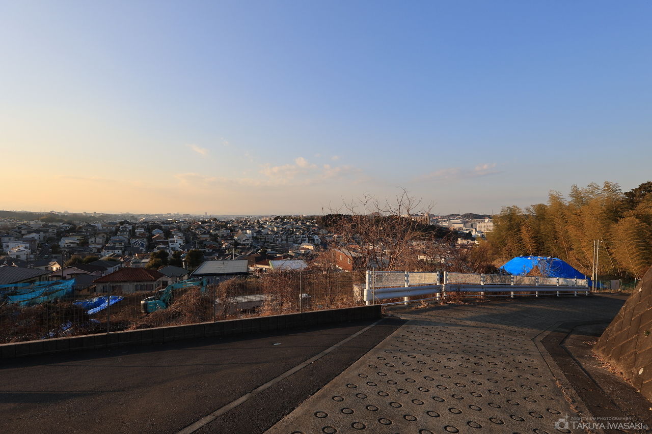 ビューポイントからは、西方向を中心に鴨居エリアの街並みを一望できます。視界はそこそこ広いものの、高さがそれほどないため、小規模な夜景と言えます。なお、車を停めての夜景観賞は難しく、付近のコインパーキングに車を停めて訪問するのも良いでしょう。