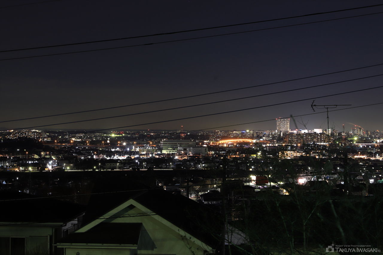 多摩モノレール程久保駅から徒歩圏にある夜景スポット。程久保エリアの住宅街と往来する多摩モノレールの光跡夜景が見渡せます。