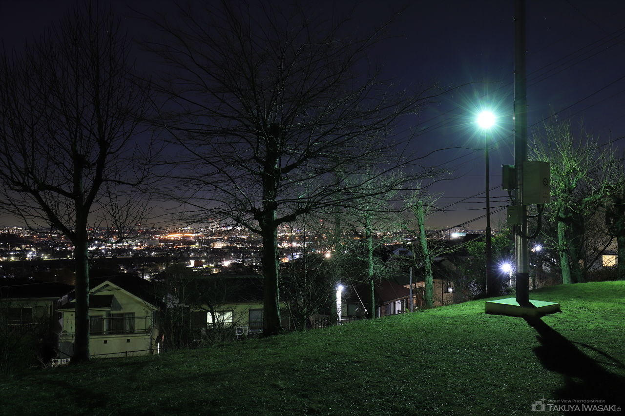 住宅街の中にある開放感ある公園。視界はさほど広くありませんが、日野市内の夜景が見渡せます。