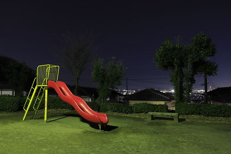 コンクリートで作られた小山が人気の公園。住宅街の中にある地元住民向けの小さな公園ですが、豊田・日野方面の夜景が観賞できます。