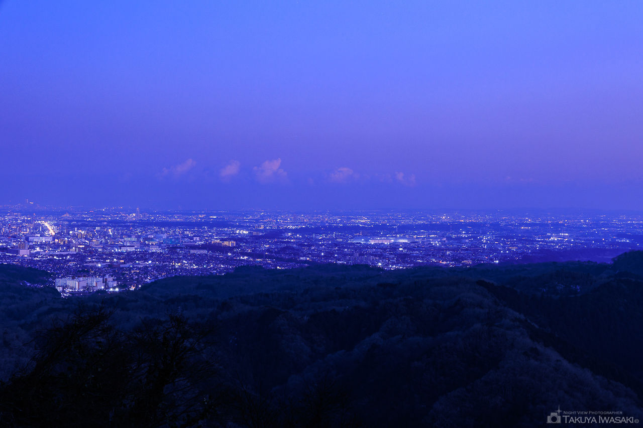 高尾山では知る人ぞ知る、東京スカイツリー・東京タワーも見渡せる展望台。八王子市内を中心に街明かりが広がります。