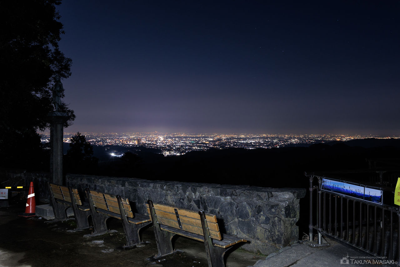 高尾山駅から徒歩圏にあり、八王子・相模原方面の夜景が見渡せます。ベンチに座ってゆっくりと夜景を楽しめます。
