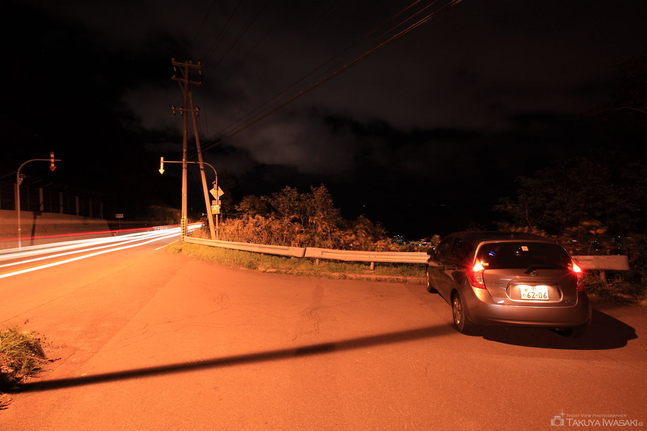 毛無山からさらに道道393号線を赤井川農場の方に向かって走ると2分ほどで視界が広がるポイントがあります。視界は狭いものの小樽市内の夜景を観賞できます。