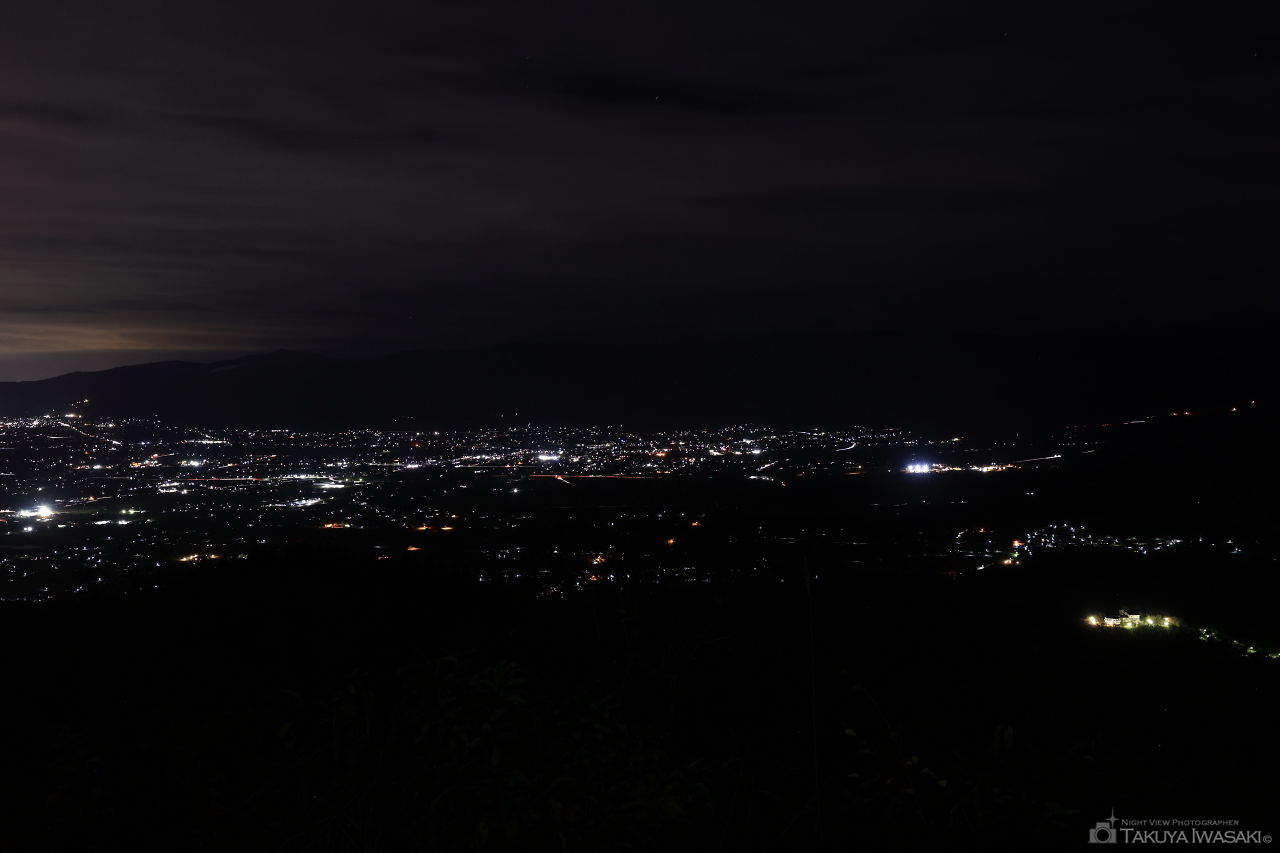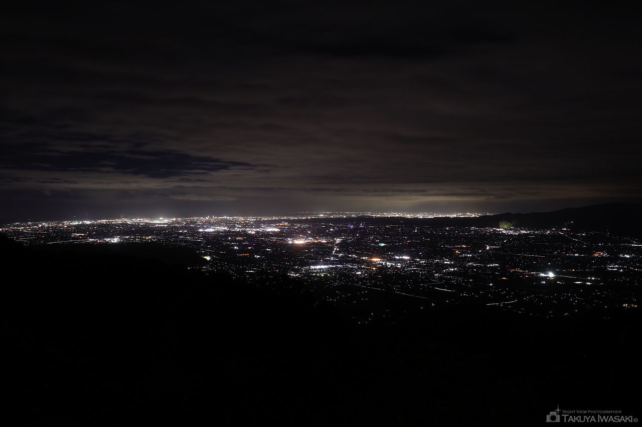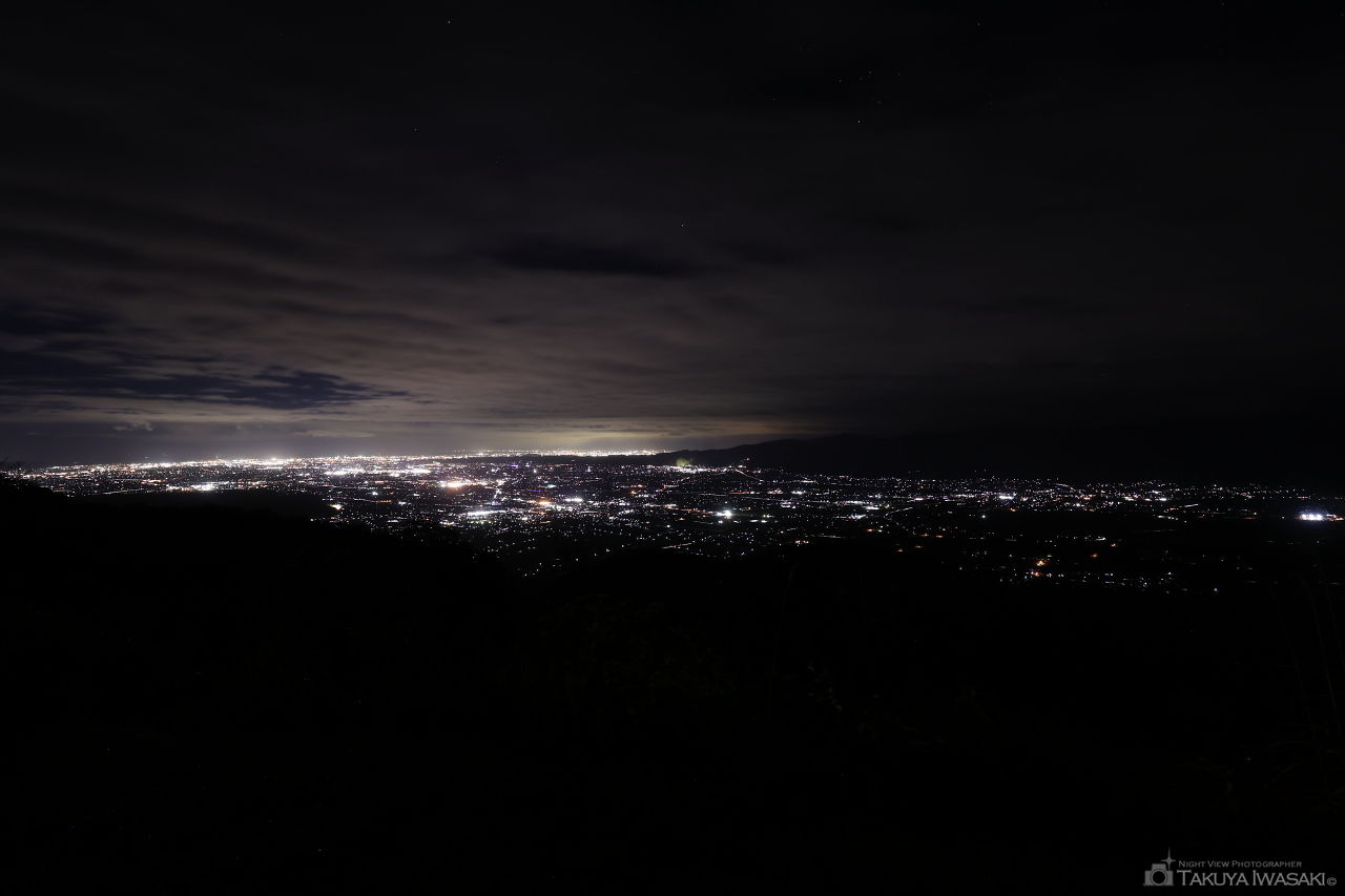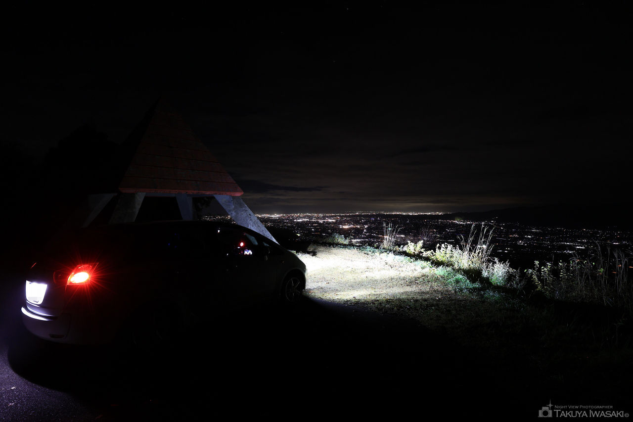 標高789.5mの展望台からは砺波平野と金沢方面の両側の夜景が見渡せます。真っ暗な山道の先にあり、マニア向けの夜景スポットと言えます。