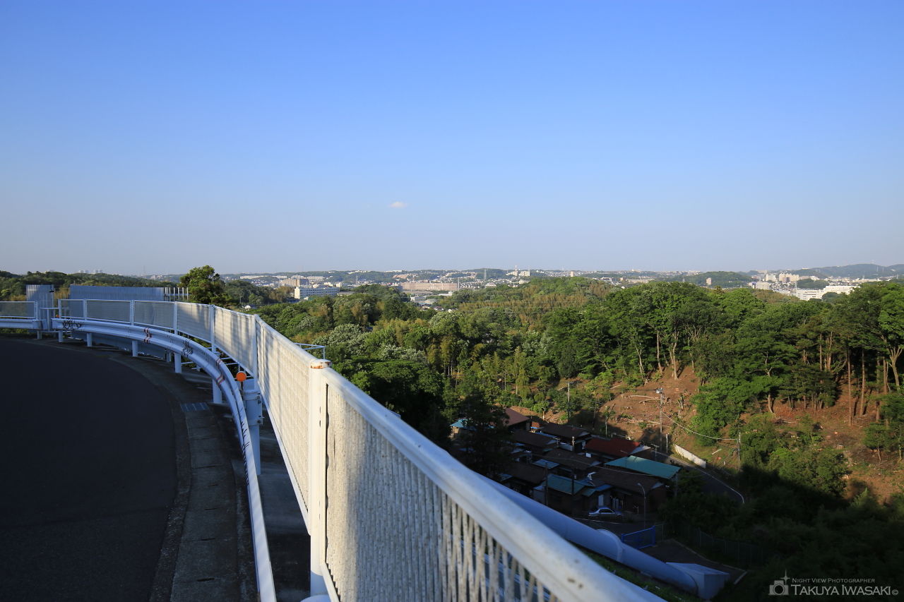 住宅街の中にある歩道橋がビューポイント。遠くに戸塚駅方面の夜景が見渡せます。日中は富士山が見える日もあるようです。