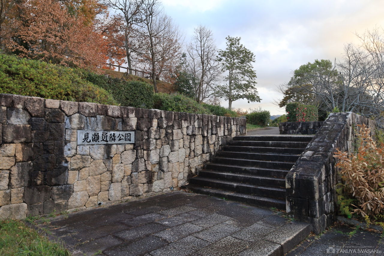 見瀬近隣公園は名前の通り、近隣住民向けに開放されている公園ですが、名称の割には意外と規模が大きく、専用駐車場も完備されています。公園内の一段高い場所からは、あなぶきパーク橿原団地方面を中心とした住宅街の夜景が見渡せます。夜景自体は小規模ですが、公園内に街灯もあり、雰囲気は悪くありません。夜景を見た後に遊具で遊んだり、いつもと違う夜景デートプランを組むのも良さそうです。
