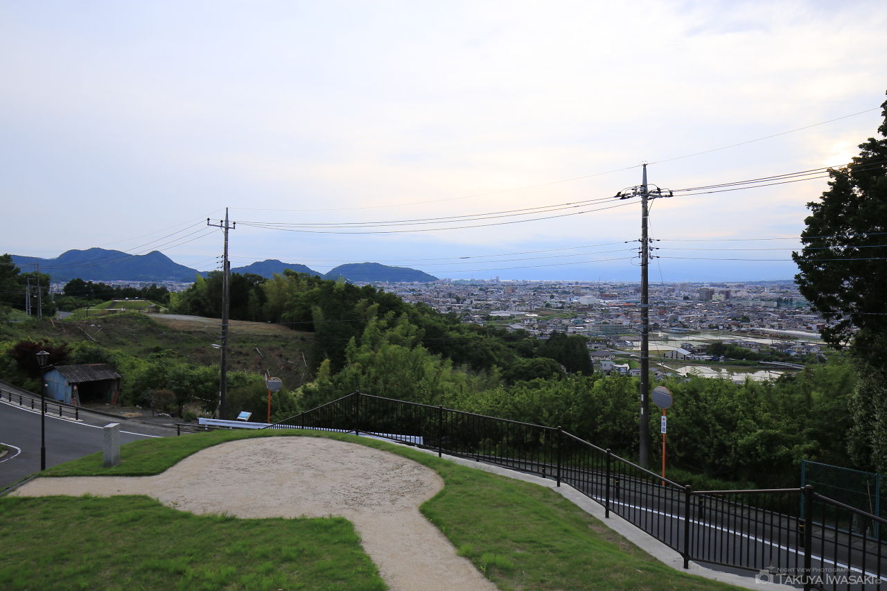また、若干視界が狭くなりますが、A地区の6号墳と5号墳からも夜景が楽しめます。公園は夜間も街灯で照らされていて雰囲気も良いため、色々な古墳に上がってみて景色を楽しんでみるのも良さそうです。
