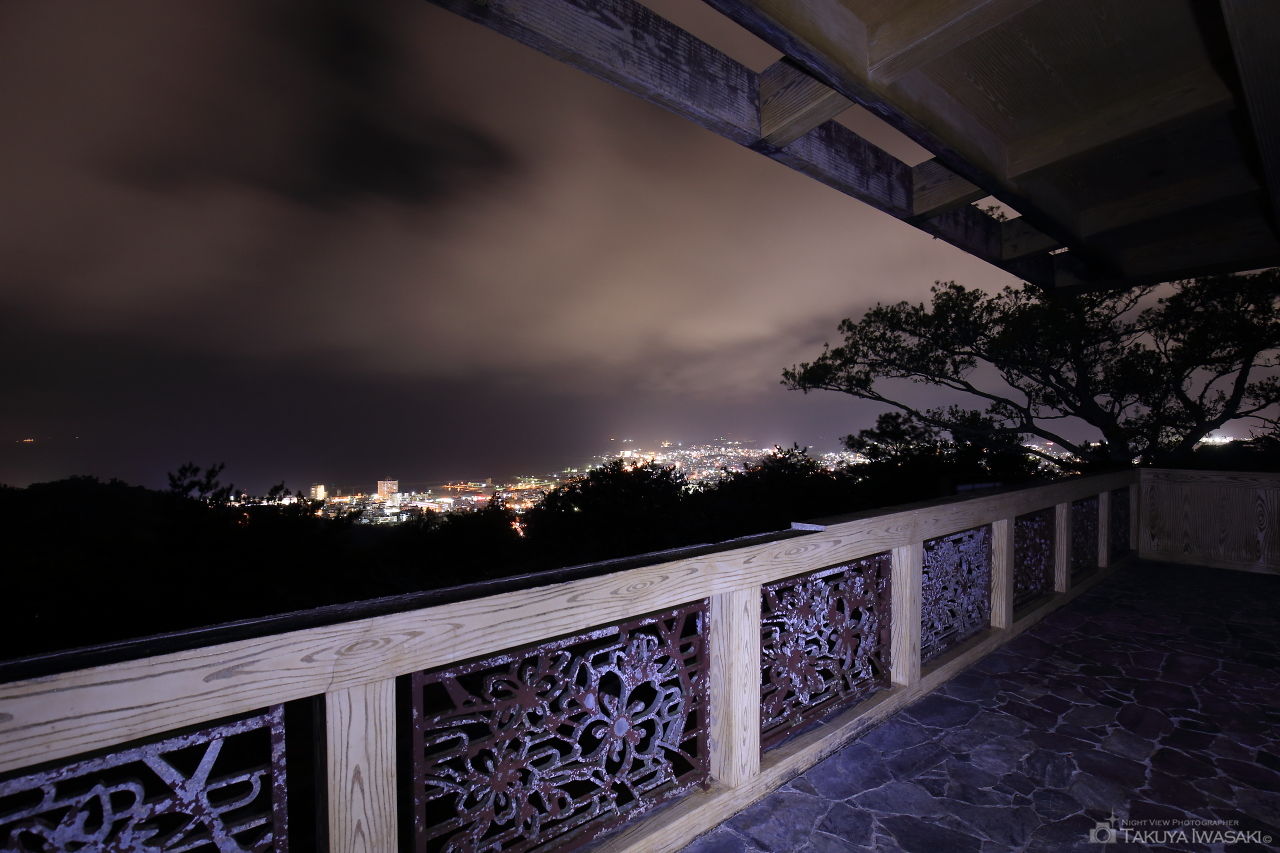 名護市街地を一望できる展望台。名護中央公園の中でも奥まった場所にあり、夜間に訪問する人はほとんどいないため、運が良ければ独占状態で夜景を楽しめます。